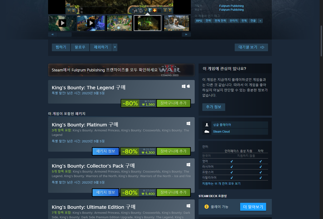 - "King's Bounty: The Legend" - Steam 스팀 페이지