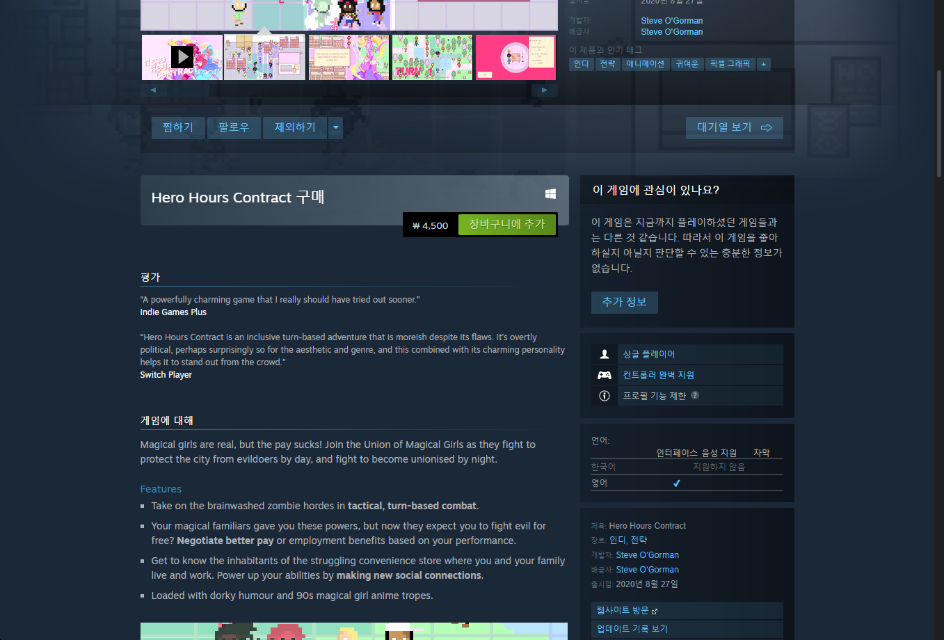 - "Hero Hours Contract" 스팀 Steam 페이지