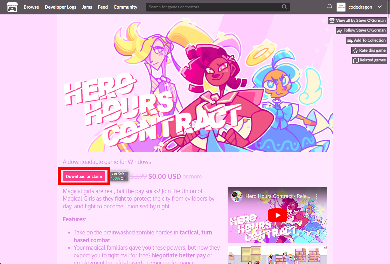 ₩4,500 -> ₩0(Free) Hero Hours Contract 히어로 아워즈 컨트랙트 무료로 받기 영구소장 - itch.io 잇치 닷 아이오 한시적 무료 소장하기