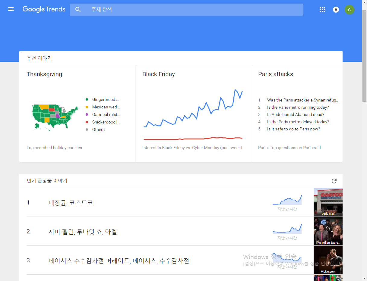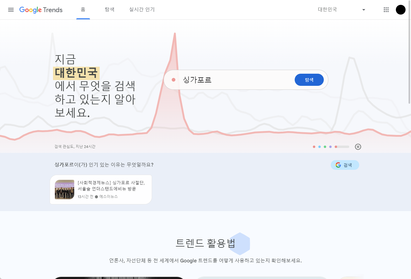 트렌트를 확인하고 싶은 단어를 입력해서 실시간 데이터 확인하면 됩니다.