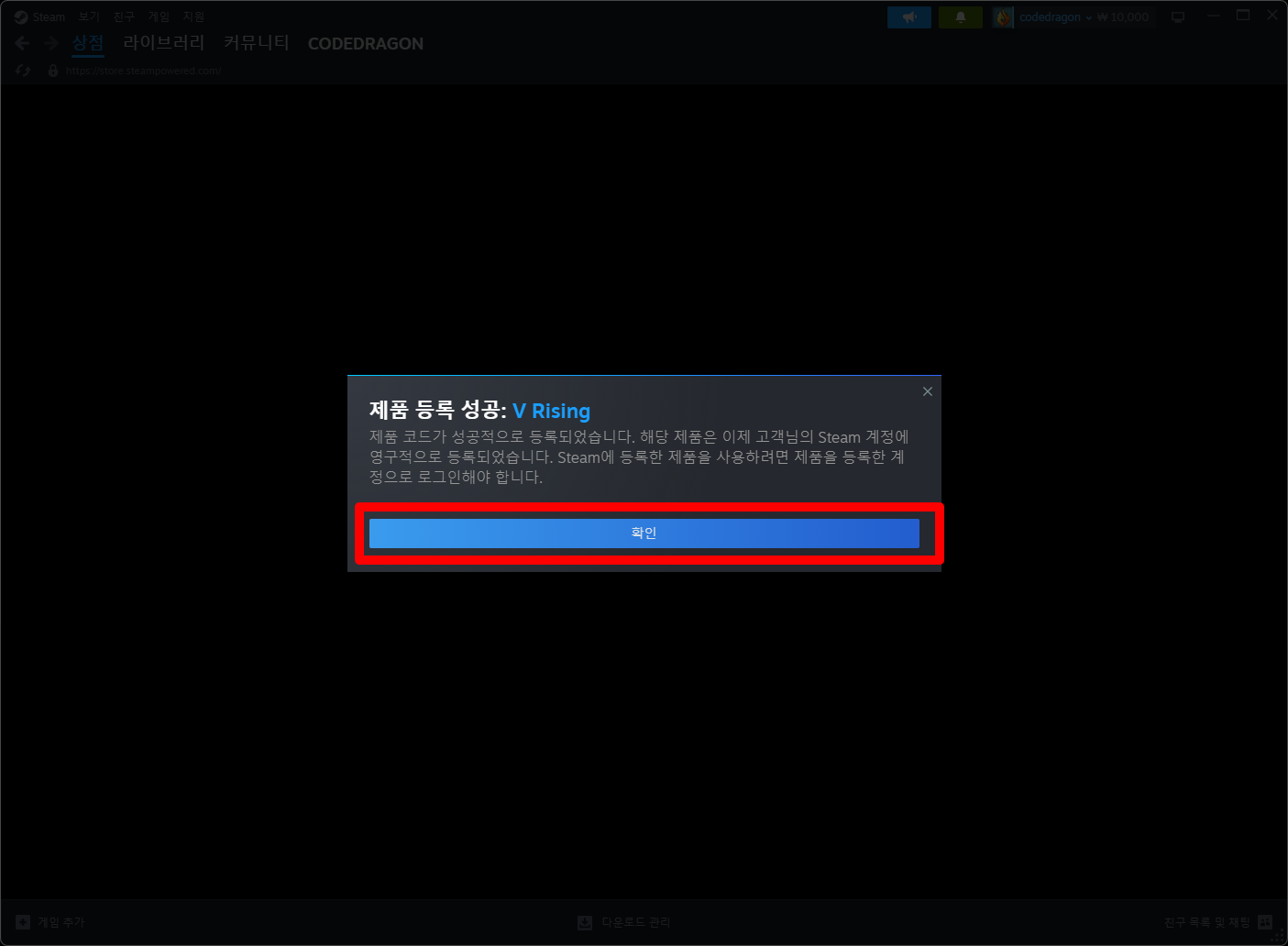 - "V Rising" 스팀키 등록하기; 활성화하기