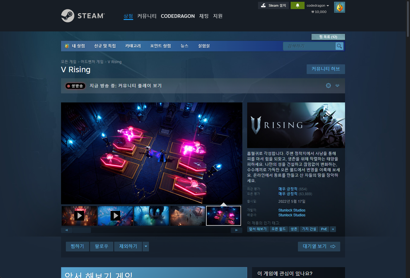 V Rising V 라이징 - Steam 스팀키 라이브러리에 등록하기