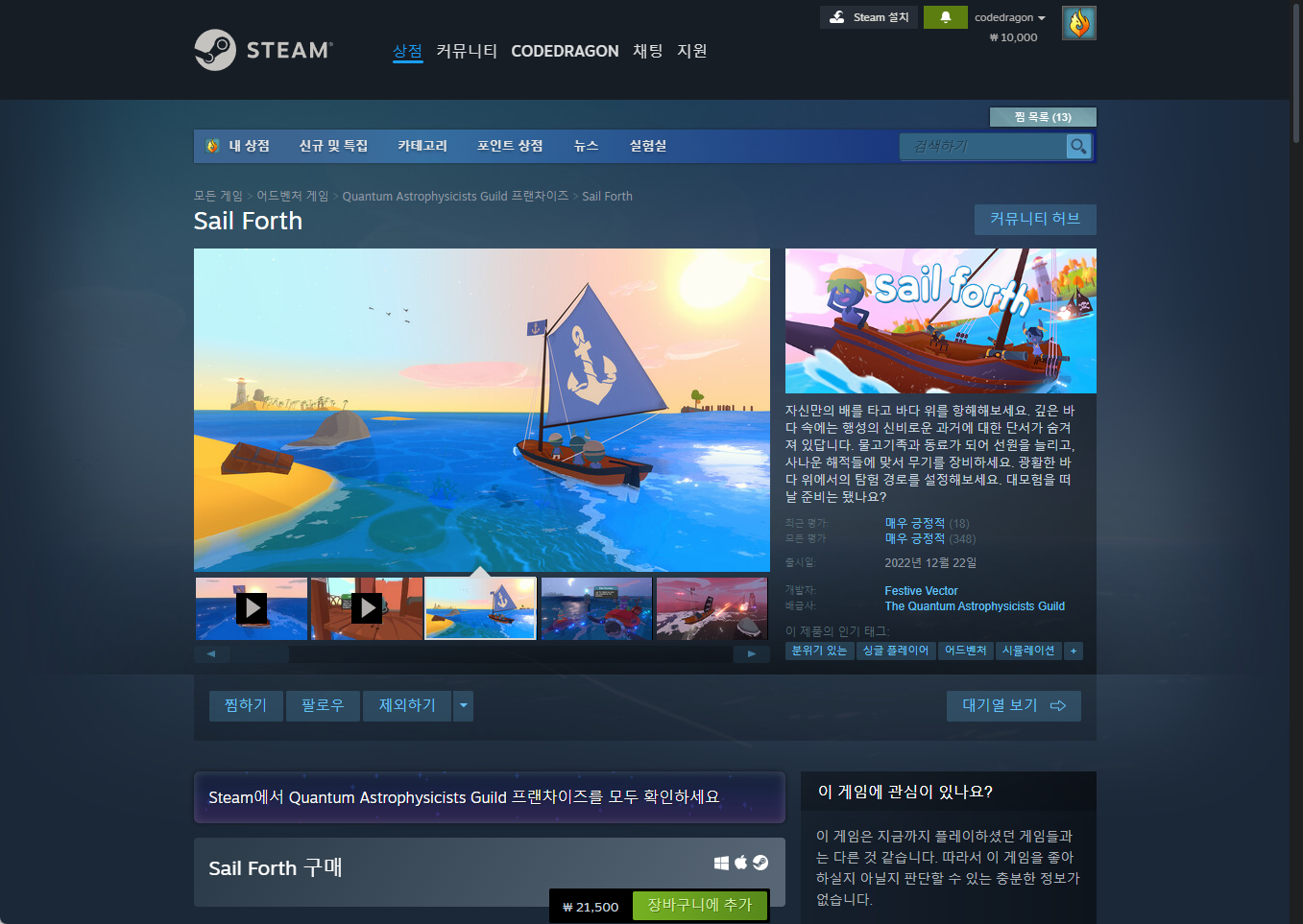 - "Sail Forth" - Steam 스팀 게임 페이지