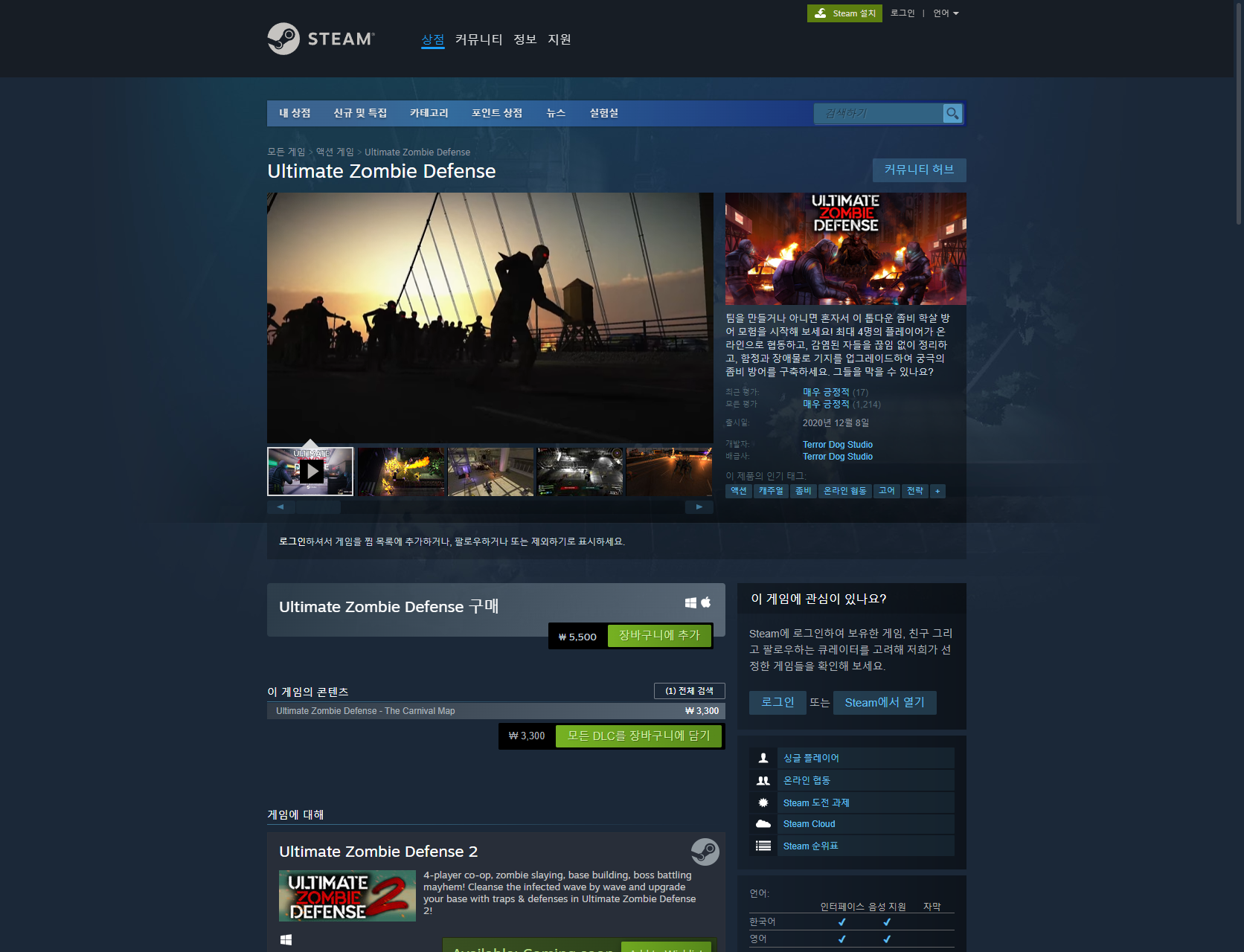 - "Ultimate Zombie Defense" - Steam 스팀 페이지 재확인