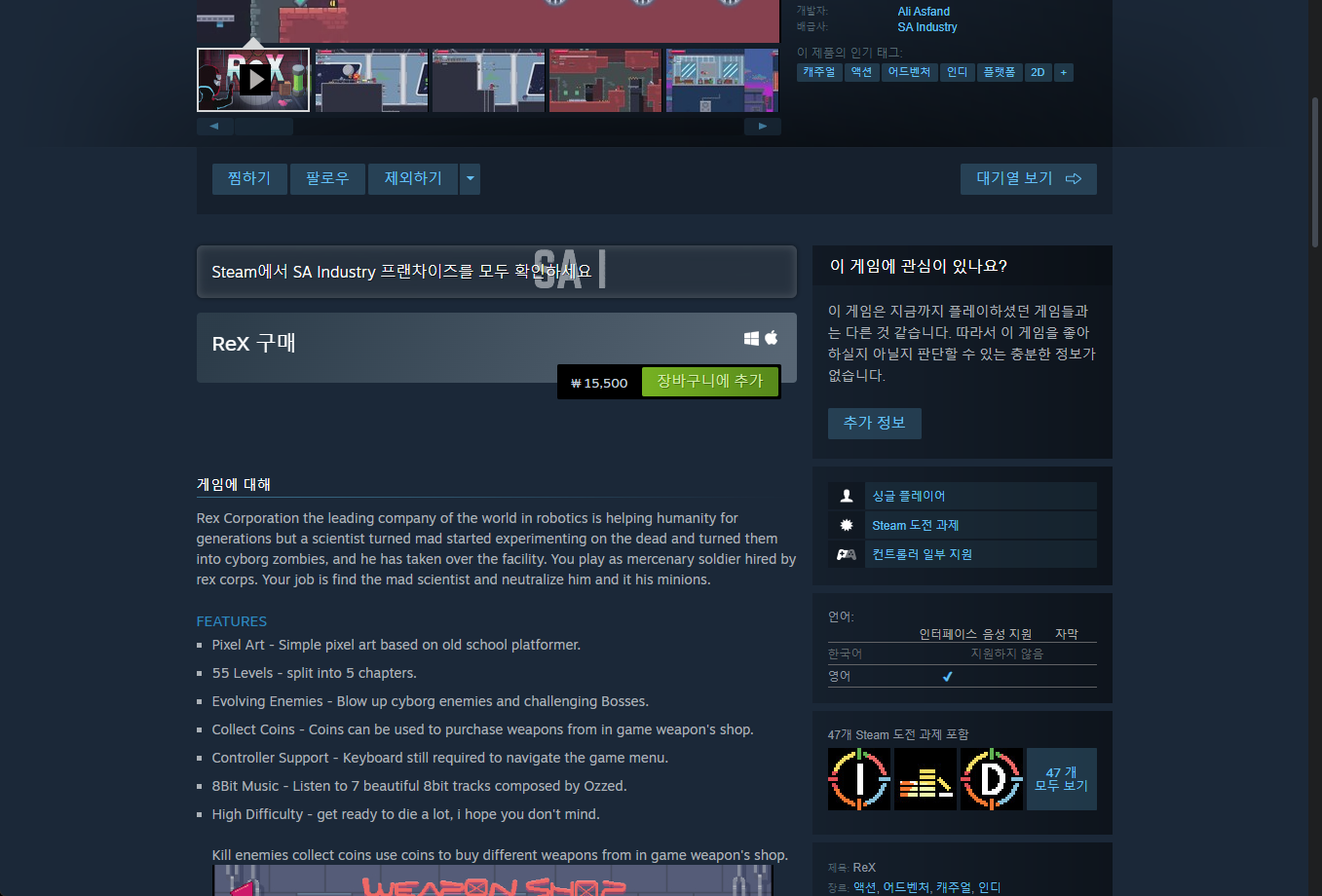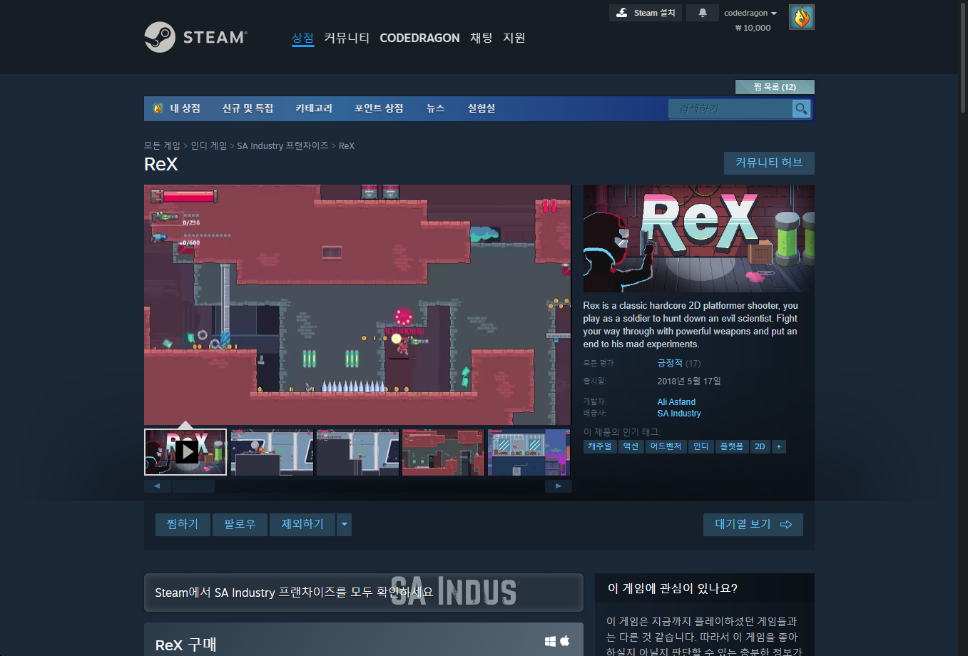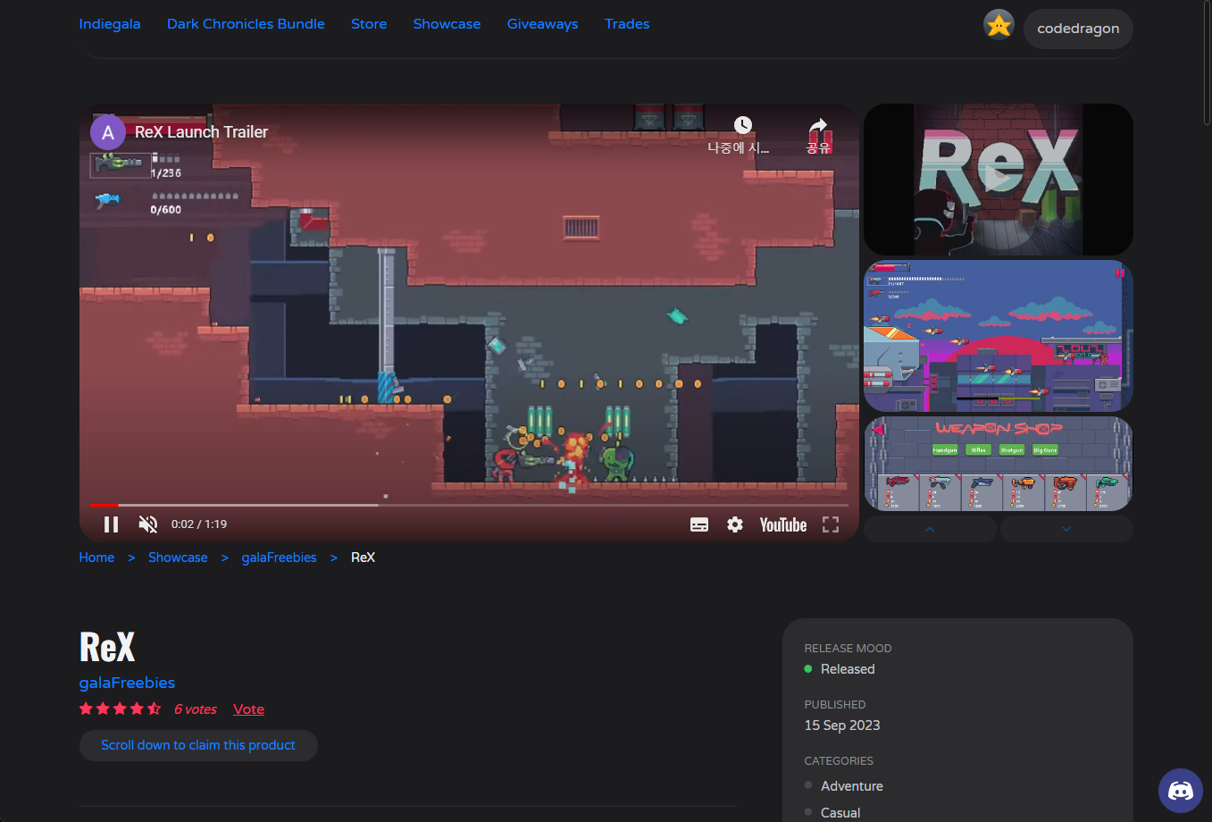 ₩15,500 → ₩ 0(Free) ReX 렉스 무료 - 인디갈라 indiegala 무료 소장 기회 기간한정 indiegala FREE GAME, Limited time