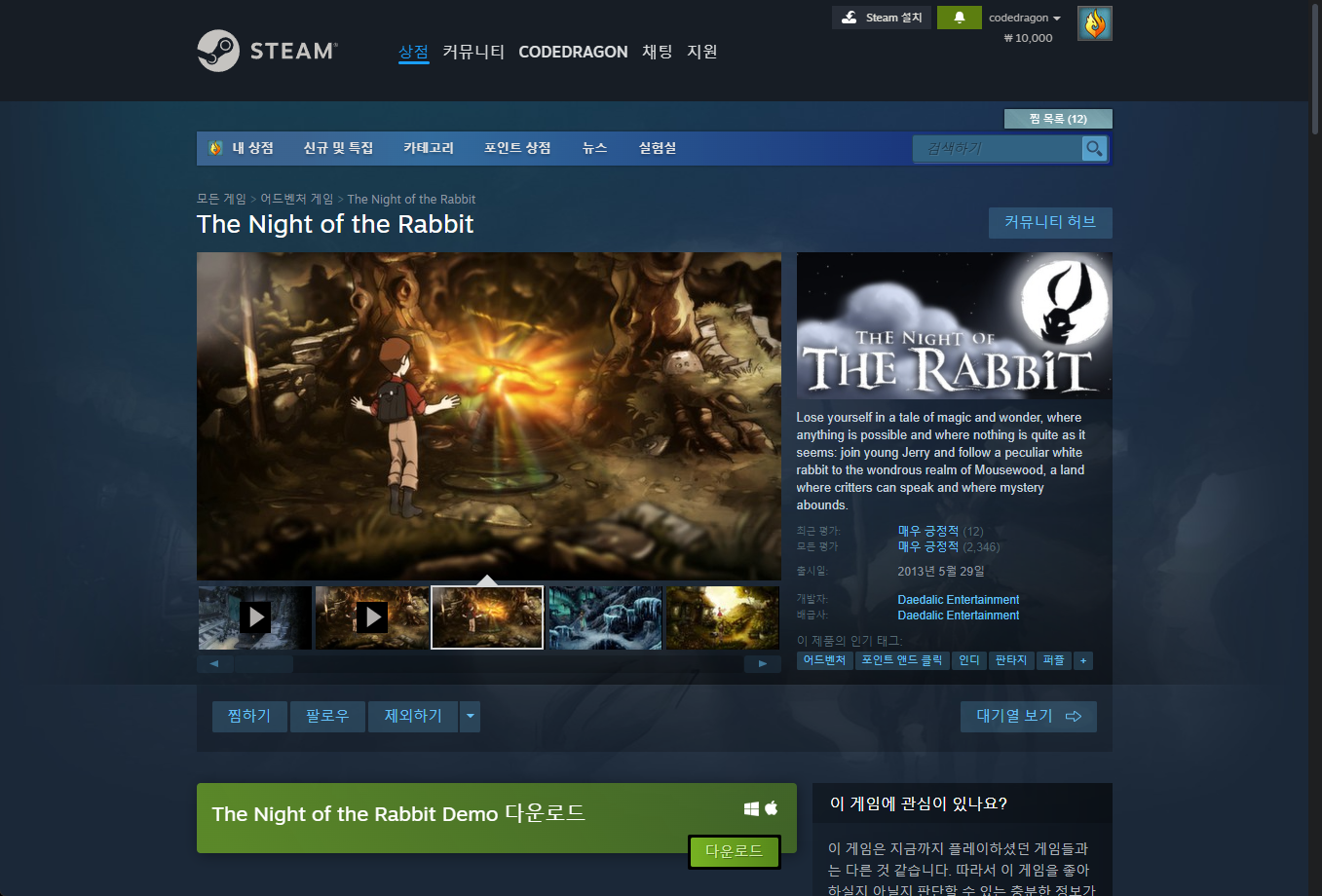 - "The Night of the Rabbit" - Steam 스팀 페이지