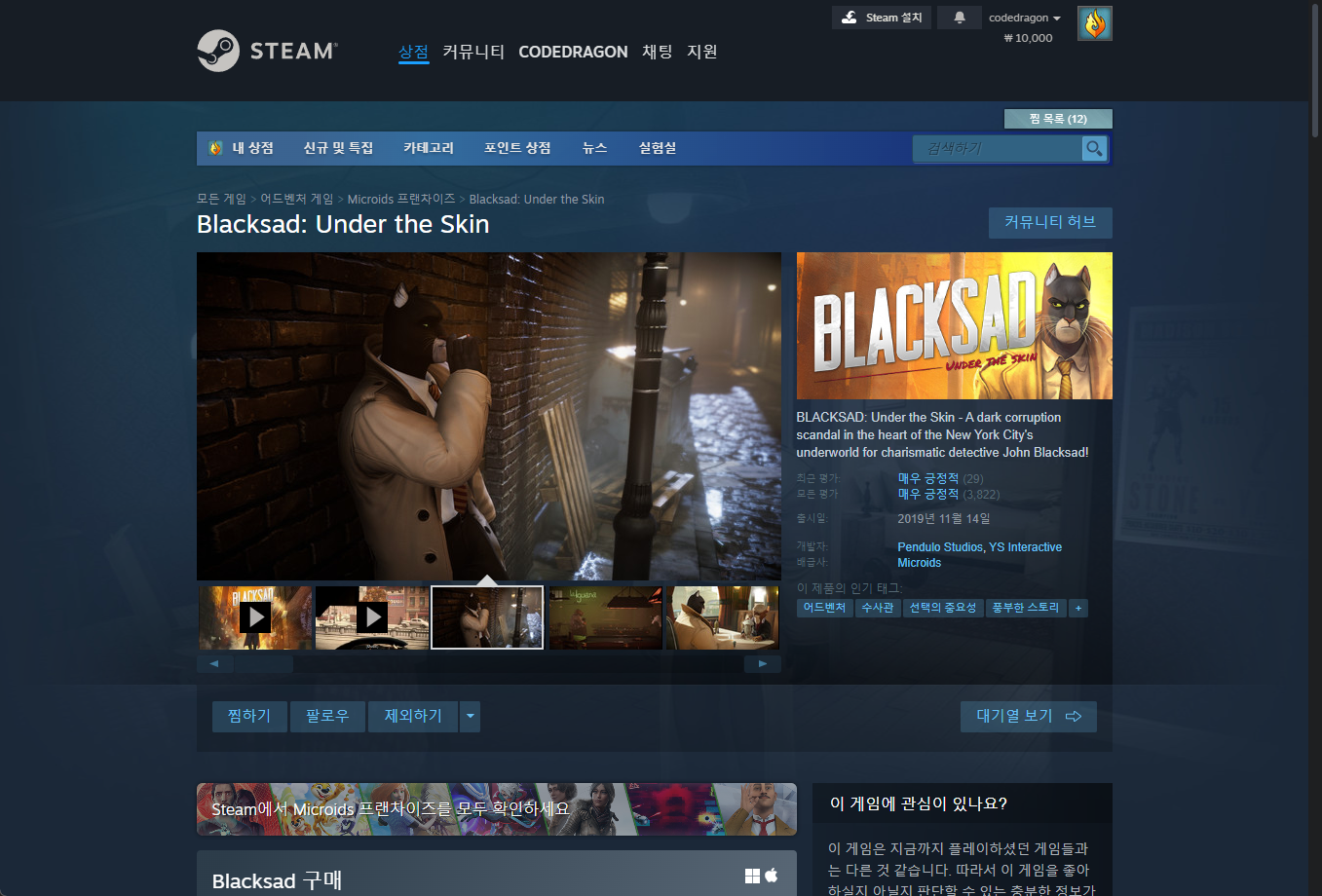 "Blacksad: Under the Skin" - Steam 스팀 페이지