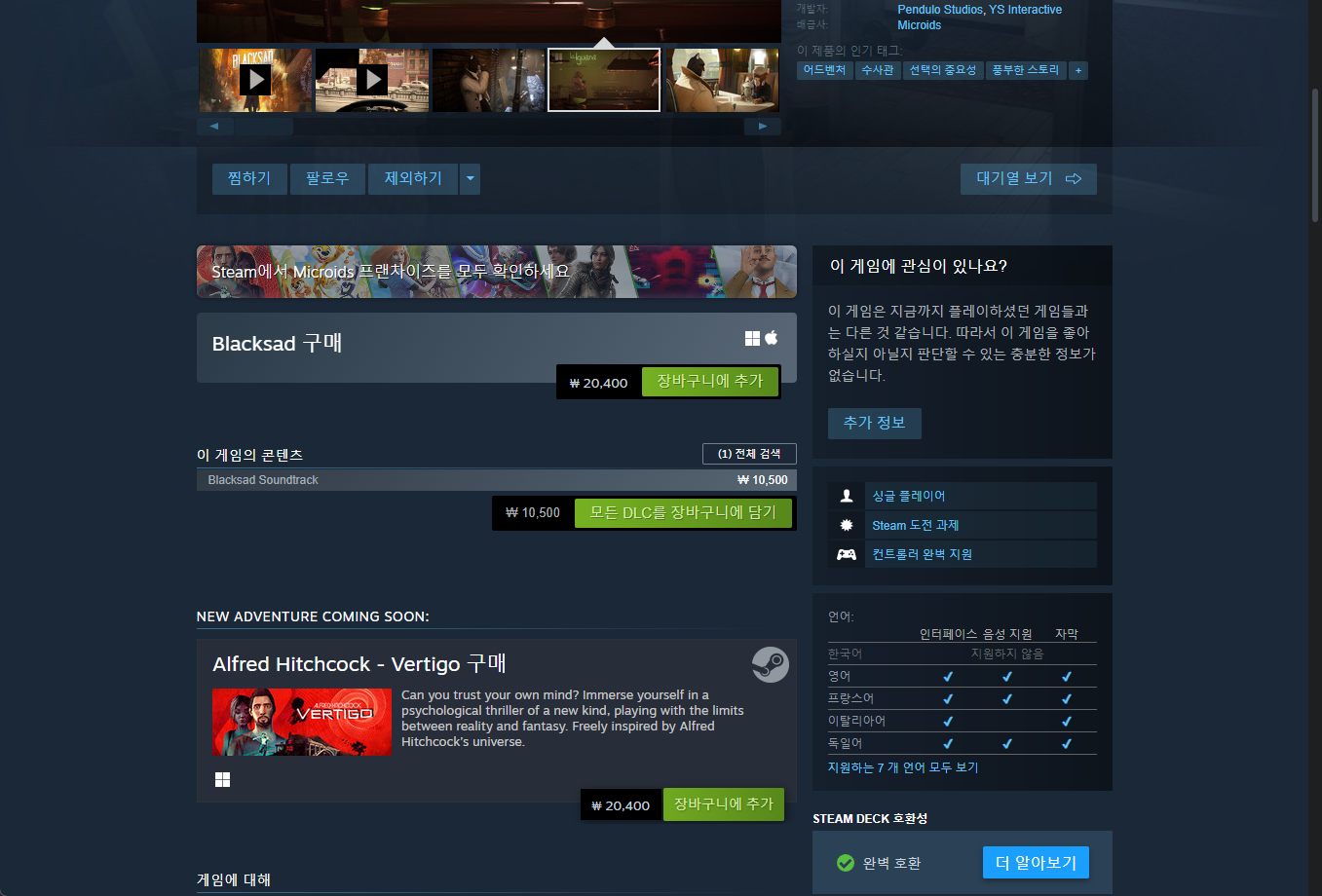 - "Blacksad: Under the Skin" - Steam 스팀 페이지