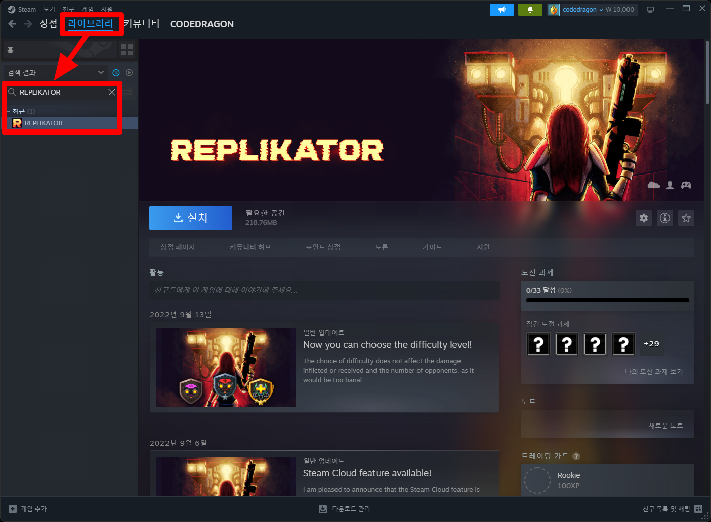 "REPLIKATOR" 나의 게임 라이브러리 확인