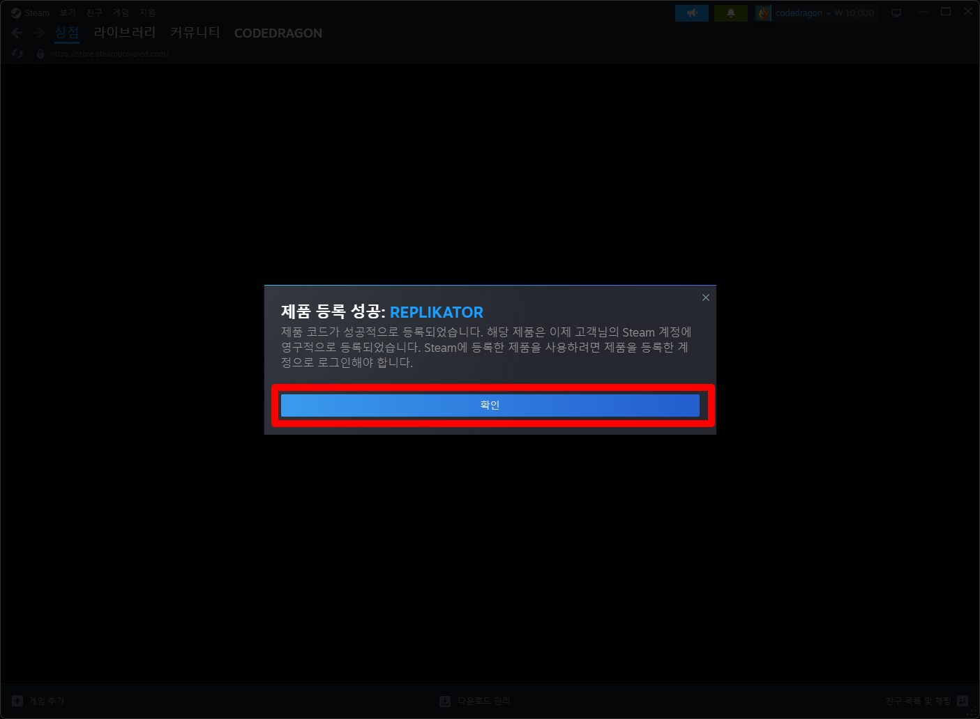"REPLIKATOR" 스팀키 등록하기; 활성화하기