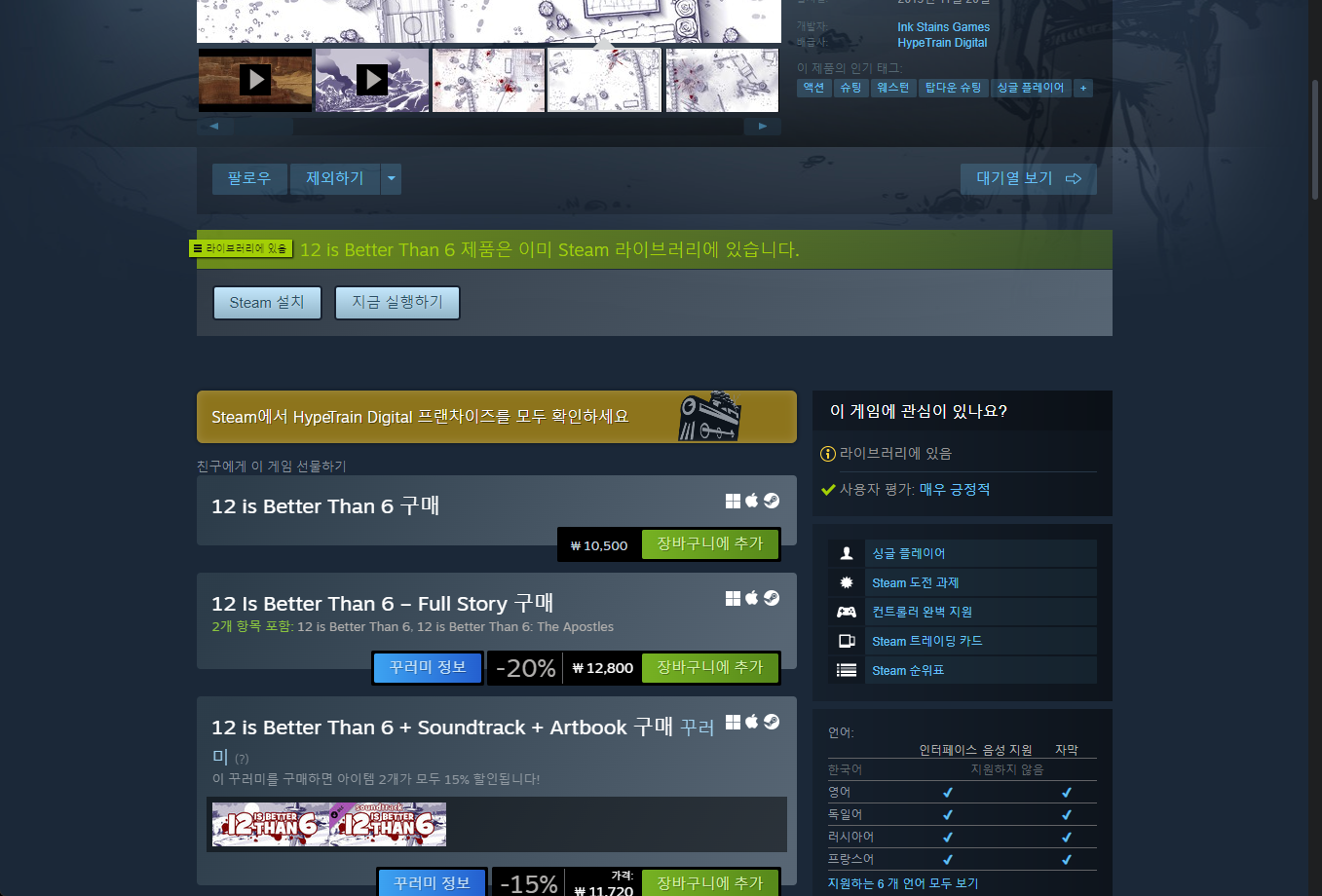 - "12 is Better Than 6" 나의 스팀 게임 라이브러리 확인
