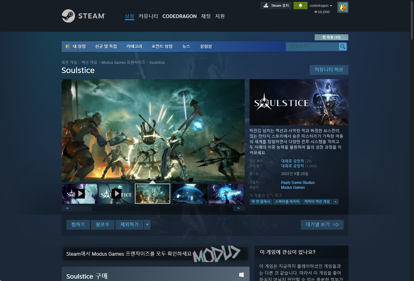 - "Soulstice" 게임 페이지 다시 접속하기