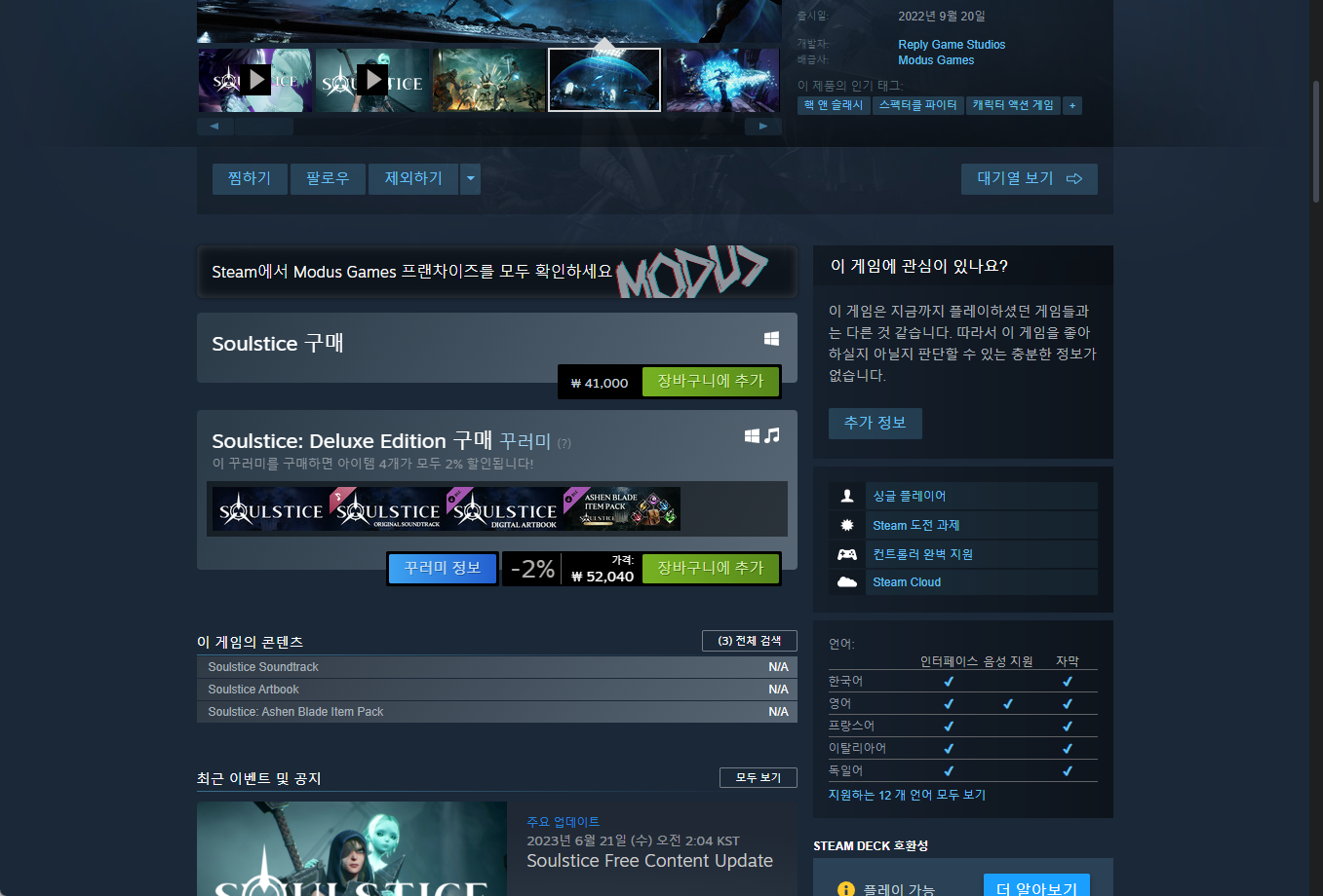 - "Soulstice" 에픽 무료게임 페이지