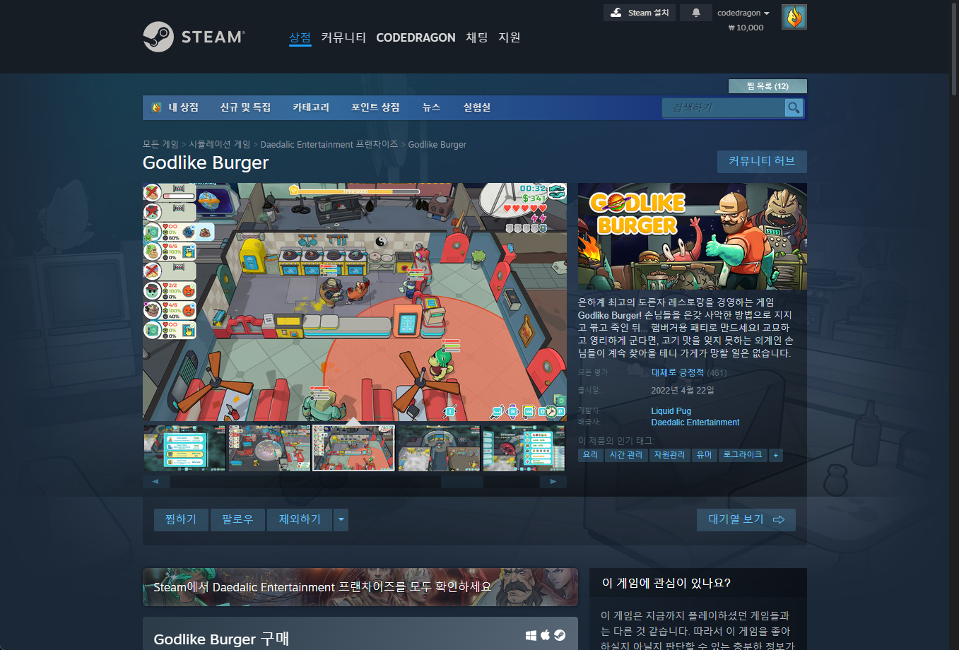 - "Godlike Burger" - Steam 스팀 게임 페이지