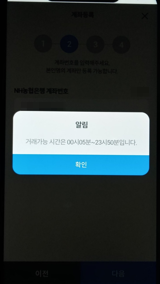 NH농협은행 계좌 등록시 발생하는 오류로 신규 앱 서비스 출시후 발생된 문제입니다.
