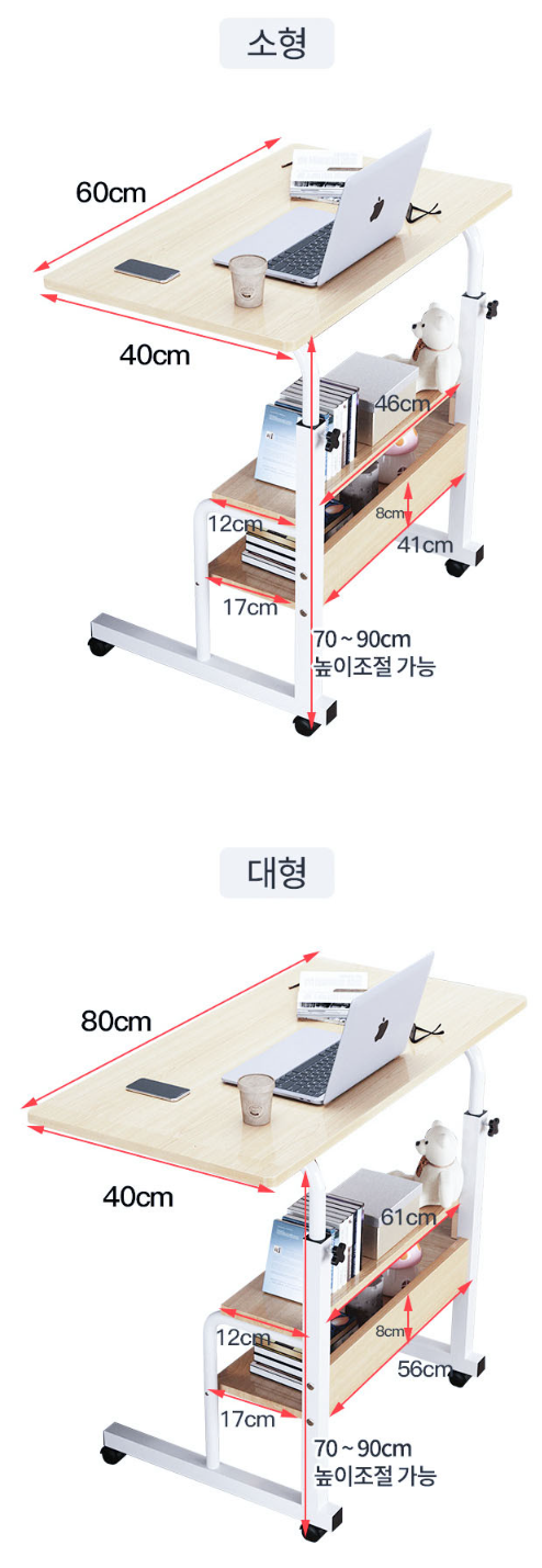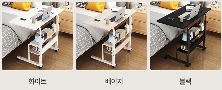 루시리빙 선반형 1인용 책상 이동식 바퀴 조절 수납 책상 보조 테이블, 미니데스크, 독서대책상, 사이드테이블, 독서대책상, 무빙테이블, 철제테이블, 침대테이블