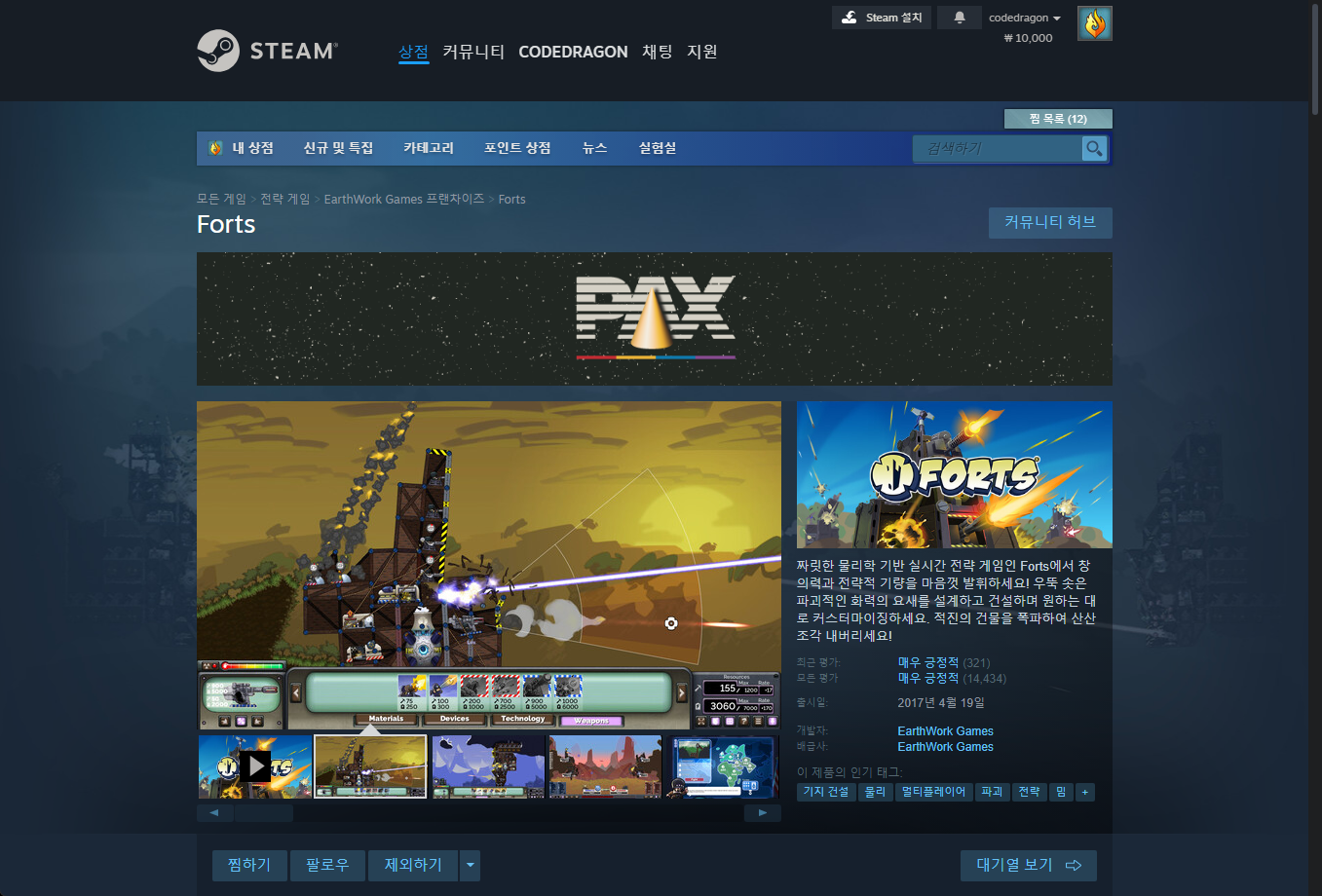 "Forts" Steam 스팀 게임 페이지