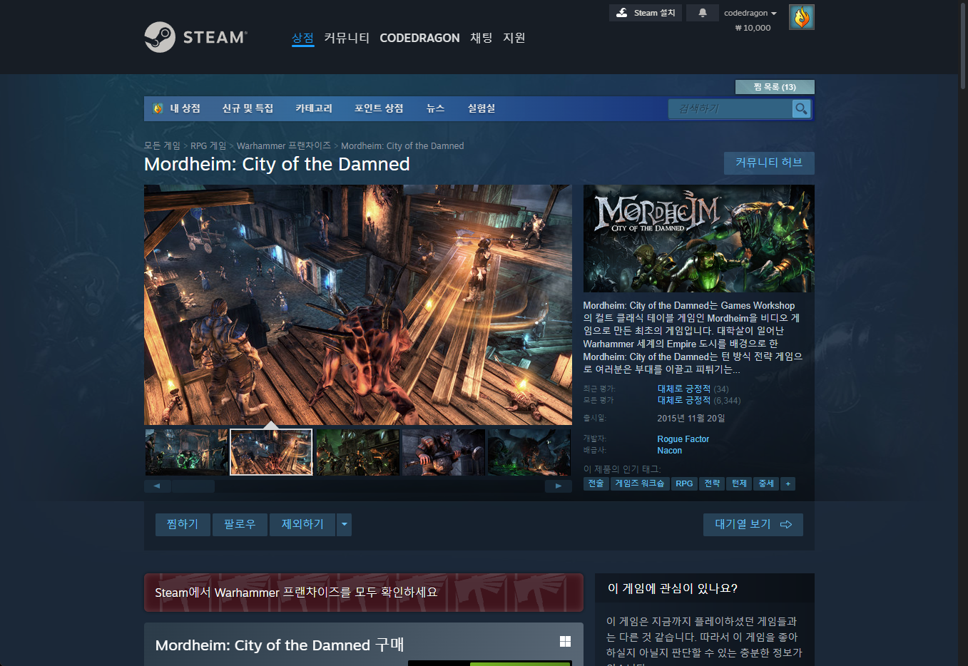 - "Mordheim: City of the Damned" 게임 라이브러리 확인