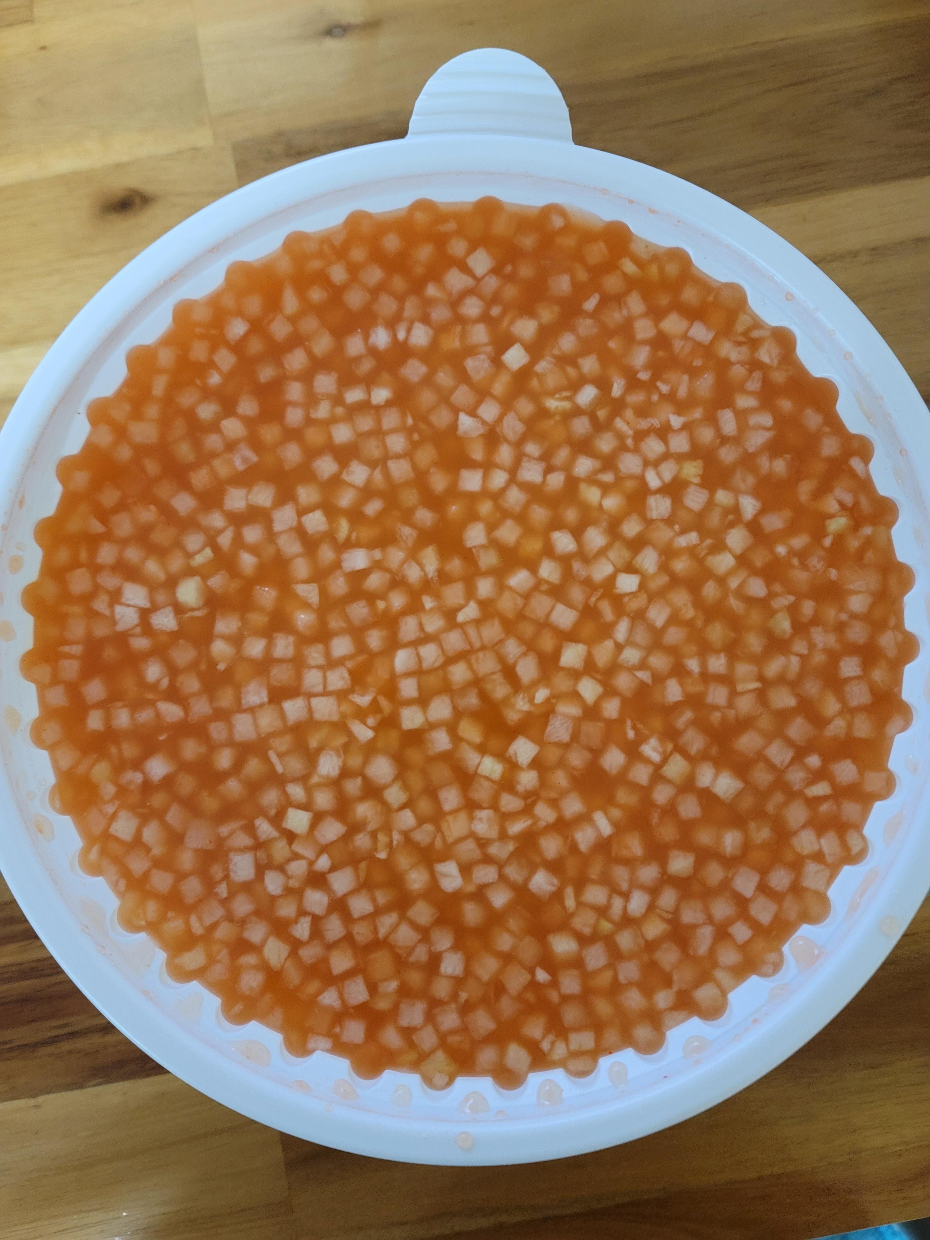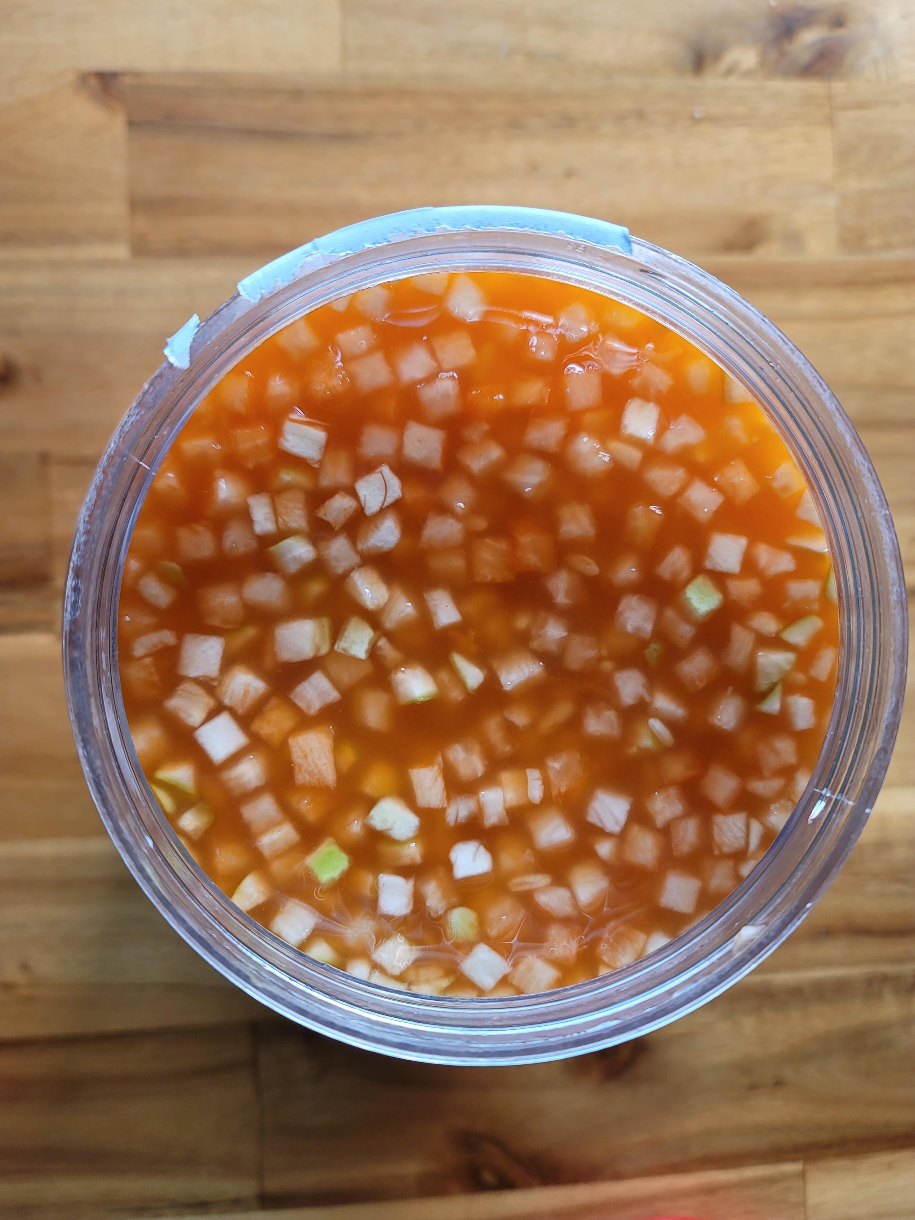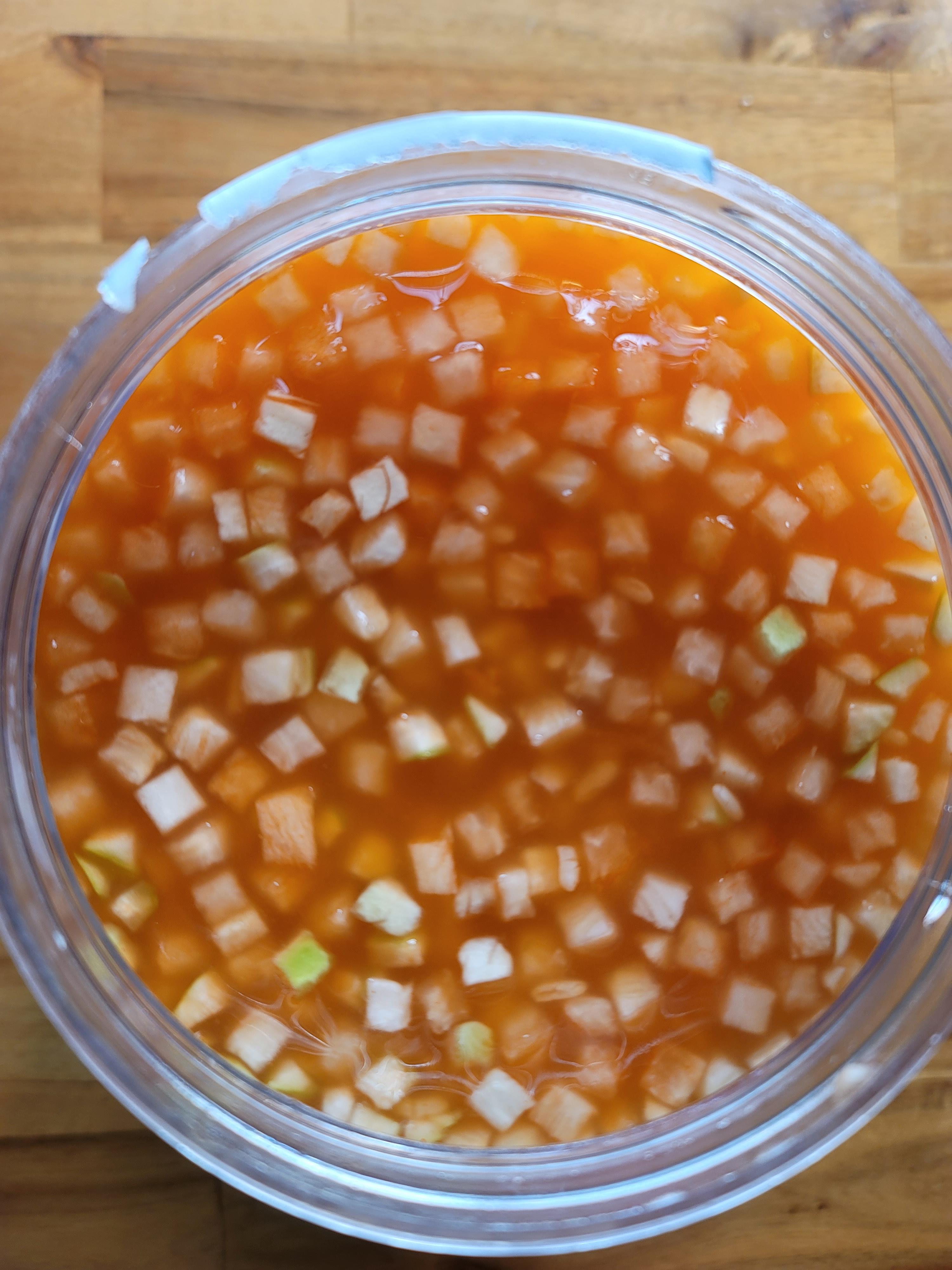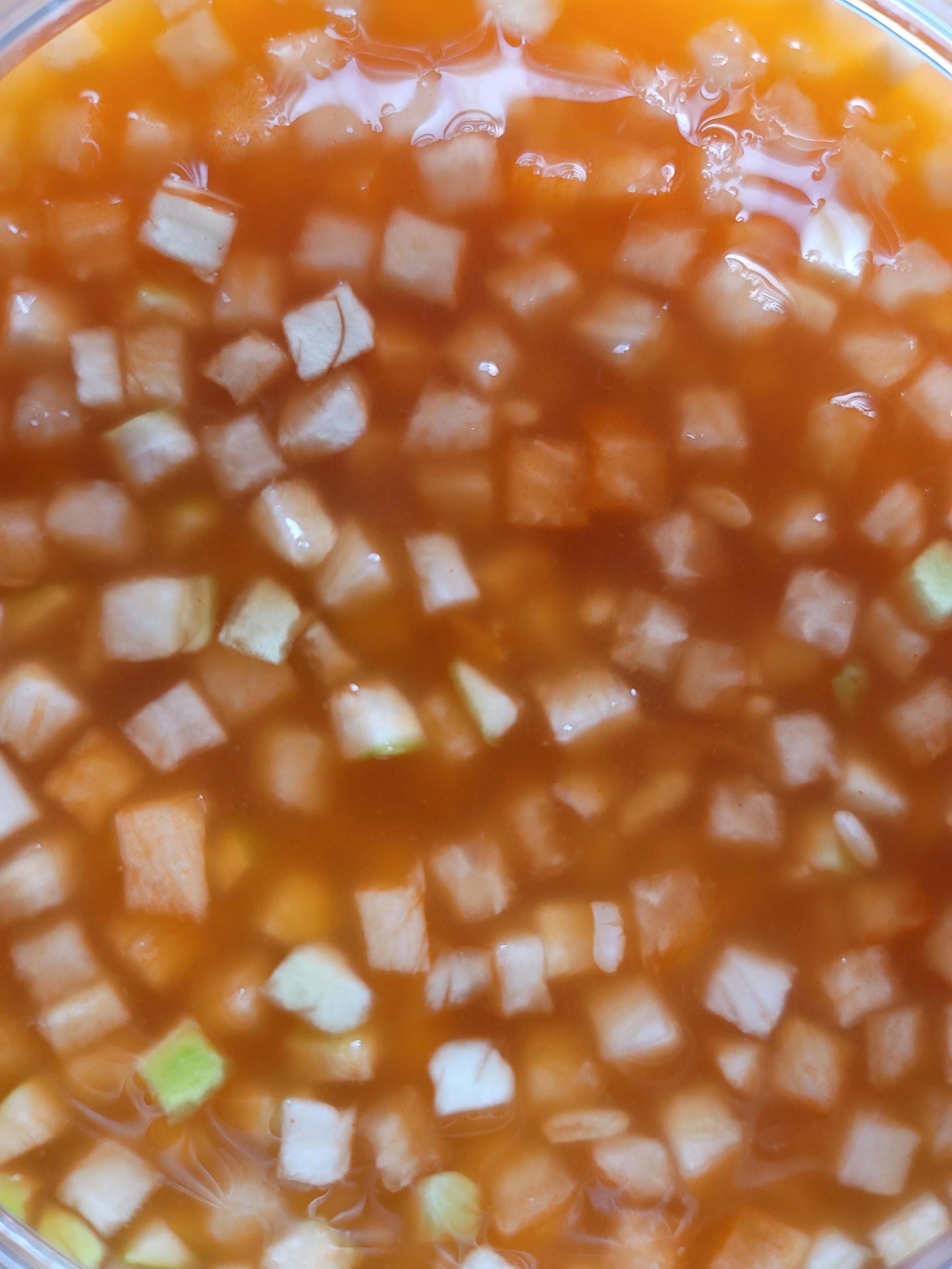 고춧가루를 넣어 매운맛과 단맛, 새콤한 맛이 있어 호불호가 큰 건강식품입니다.