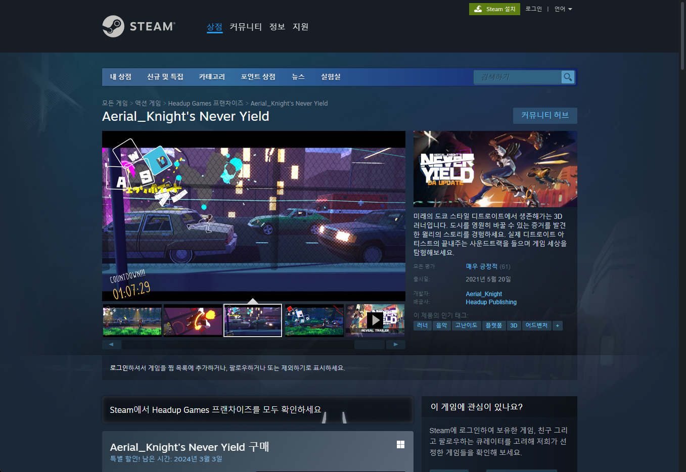 - "Aerial_Knight's Never Yield" 한시적 무료게임 구매하기