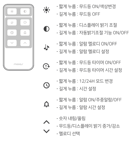- mooas 무아스 풀문 백라이트 무드등 LED 벽시계 - 리모컨 조작방법