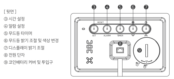 - mooas 무아스 풀문 백라이트 무드등 LED 벽시계 제품 외관/명칭