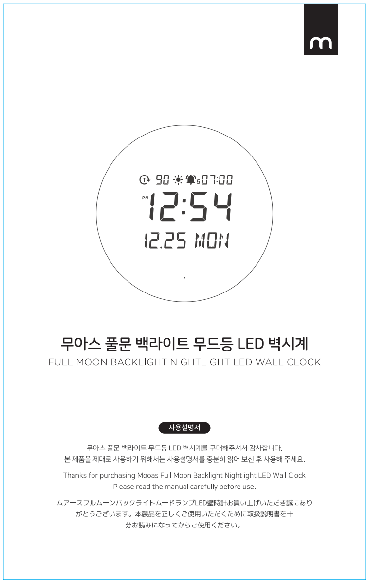 mooas 무아스 풀문 백라이트 무드등 LED 벽시계 사용설명서