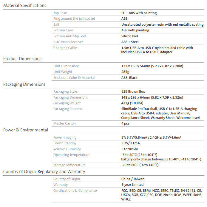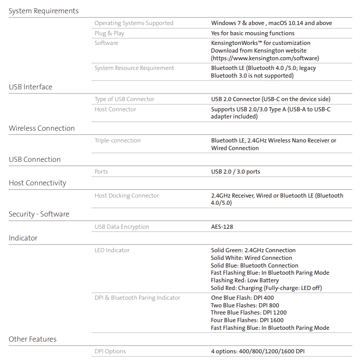 - Kensington 켄싱턴 슬림 블레이드 프로 트랙볼 마우스 - 제품 스펙