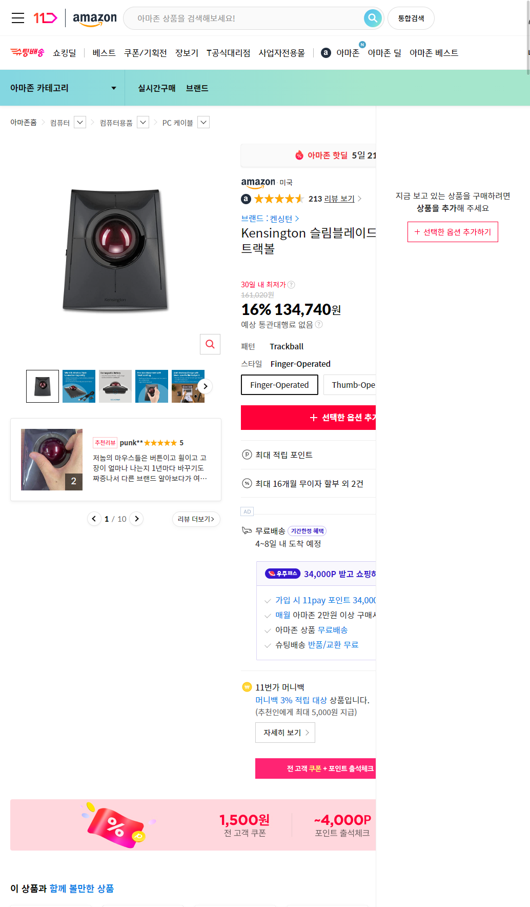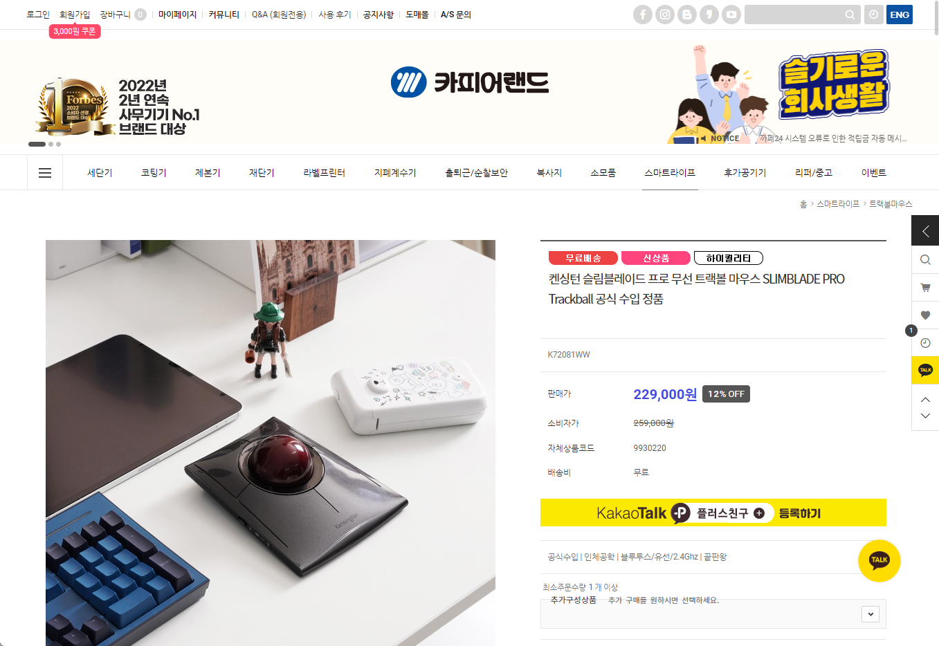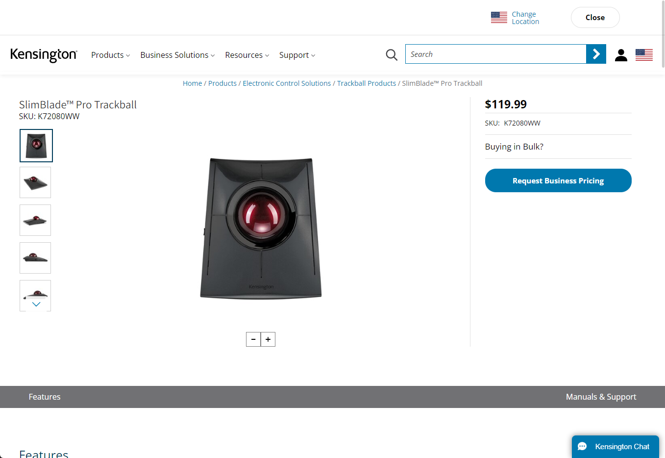 - Kensington 켄싱턴 슬림 블레이드 프로 트랙볼 마우스 - 제품 상세정보
