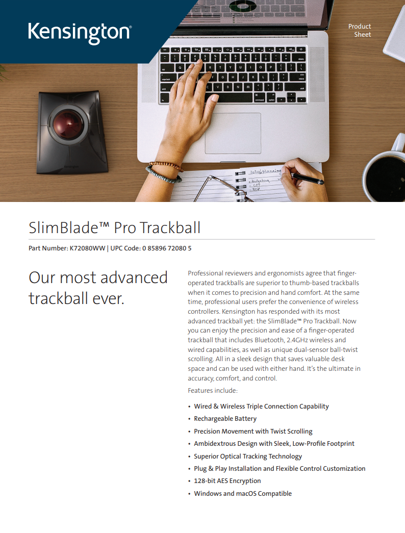 Kensington 켄싱턴 슬림 블레이드 프로 트랙볼 마우스 - 제품 상세정보