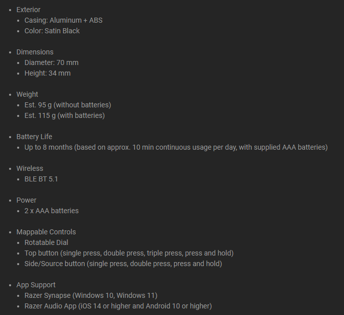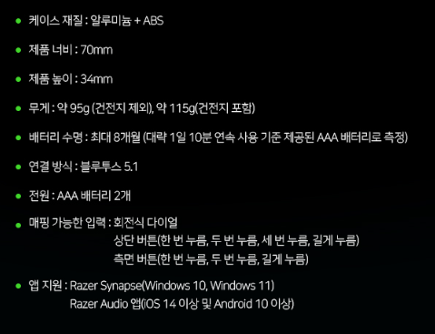 - 레이저 무선 컨트롤팟 Razer Wireless Control Pod - 특이사항