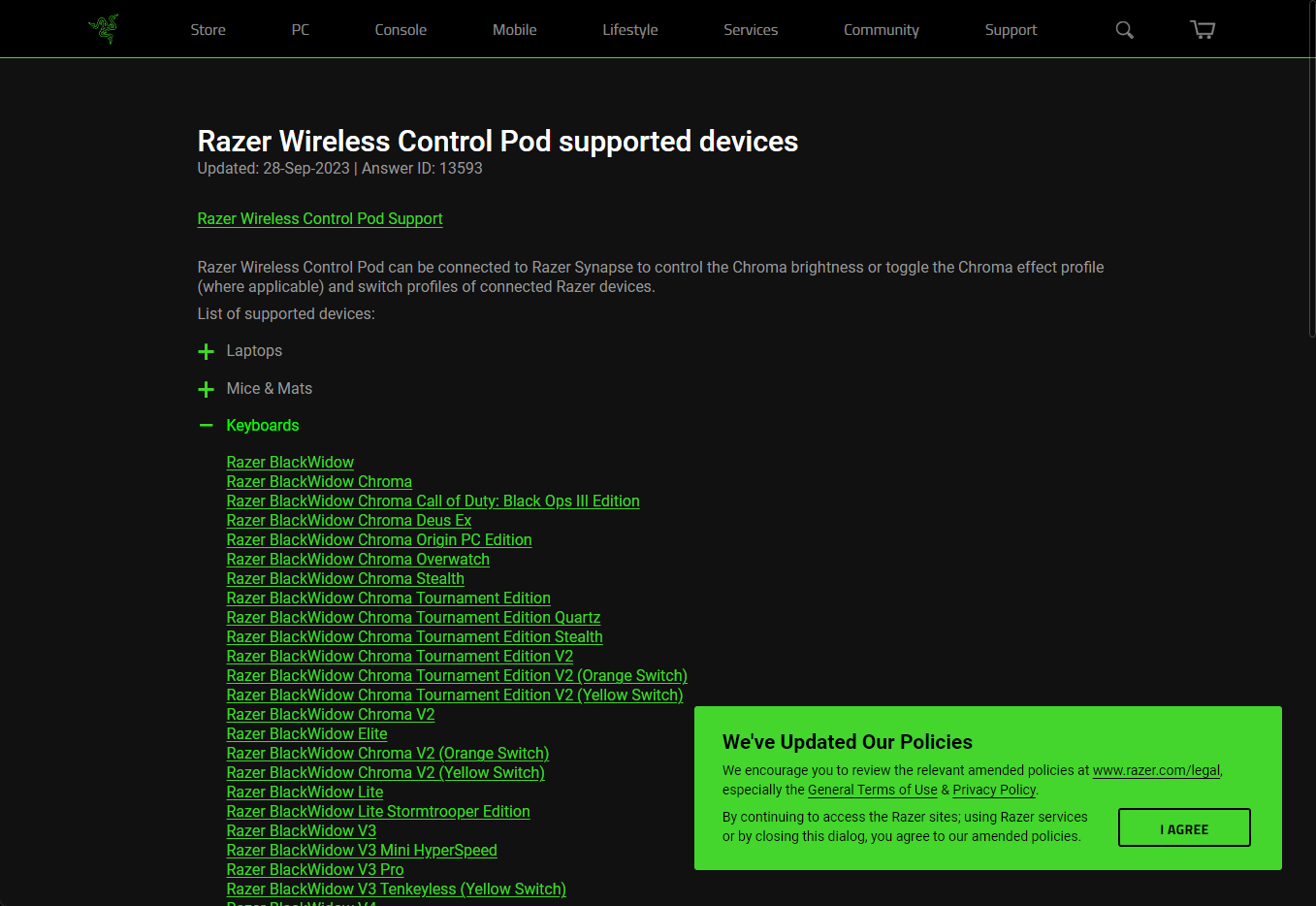 - 레이저 무선 컨트롤팟/컨트롤 포드 호환 가능한 기기 리스트 - Razer Wireless Control Pod supported devices