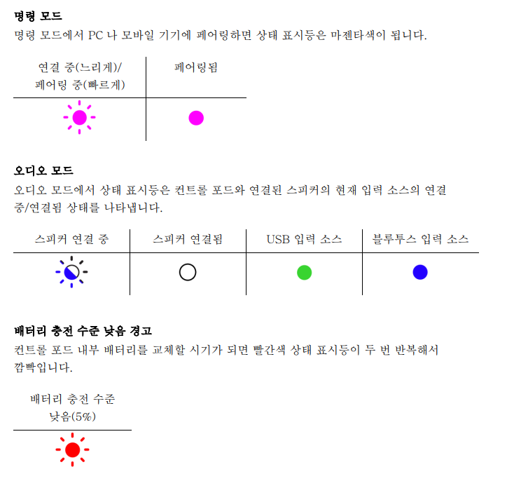 | 블루투스 연결 | 번거롭게 선을 정리할 필요 없이 원하는 곳에 Control Pod을 올려둘 수 있습니다. |