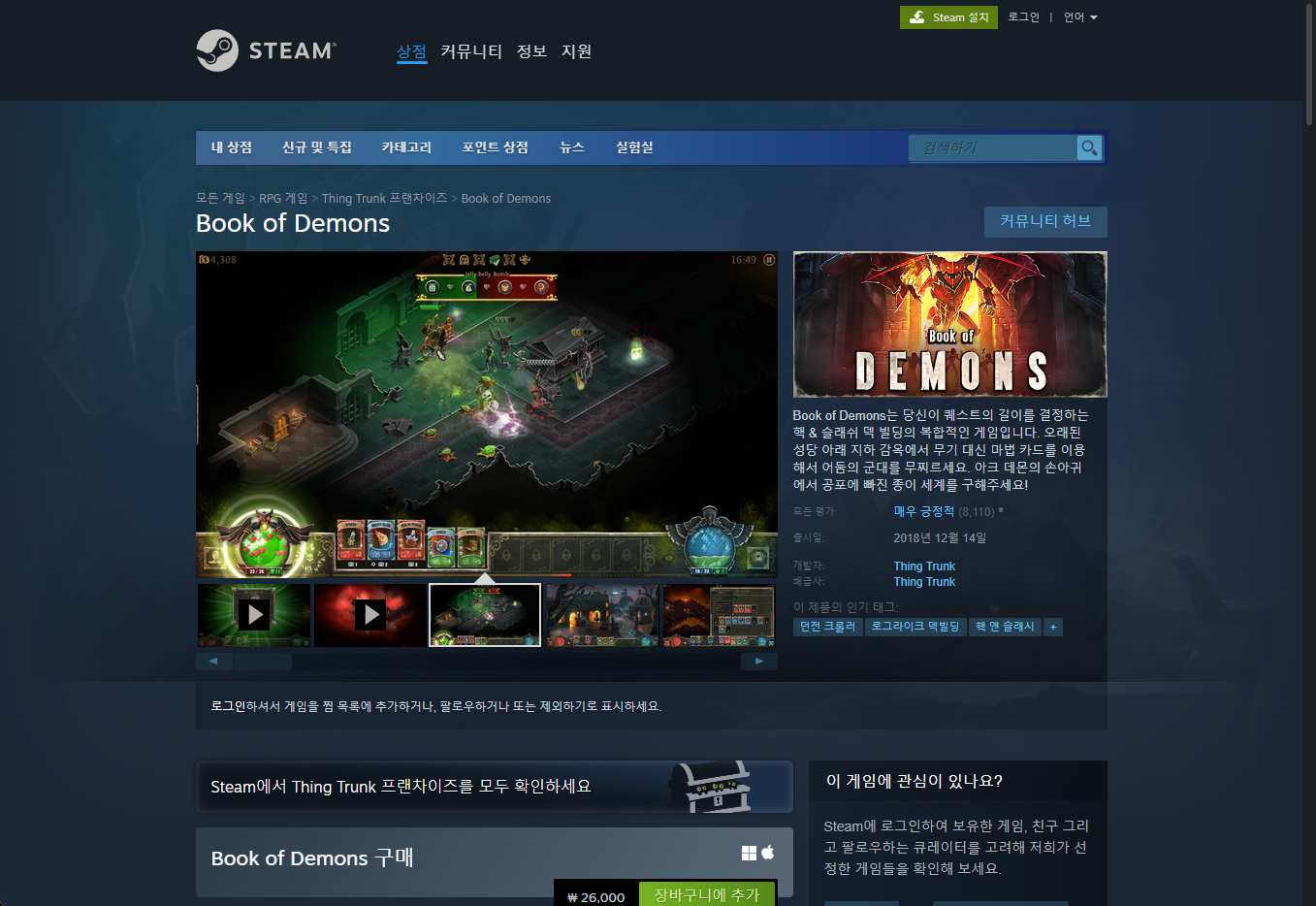 - "Book of Demons" - Steam 스팀 페이지