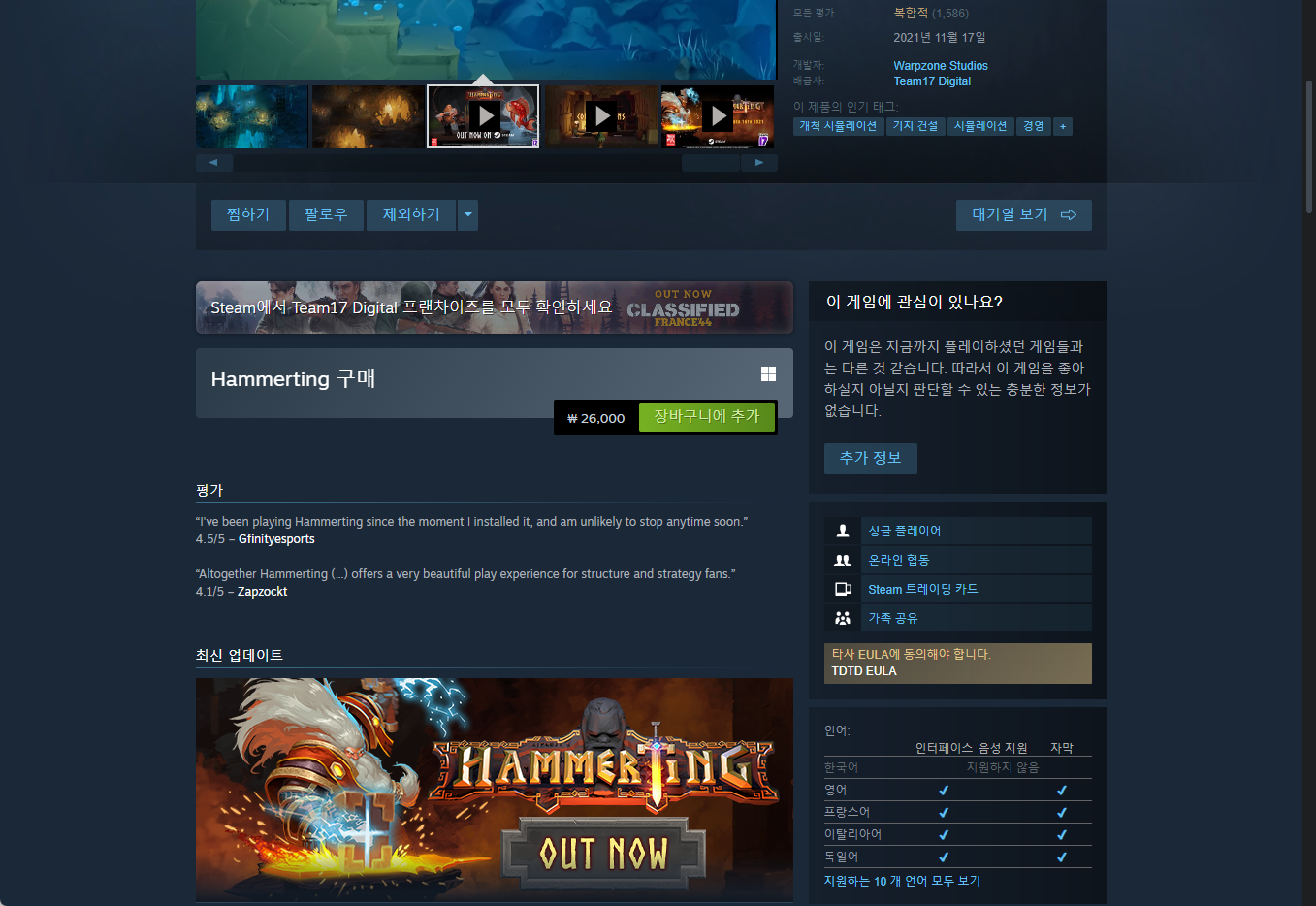 ₩26,000 → ₩0(FREE) Hammerting 해머팅 - gog 지오지닷컴 한시적 무료게임 for FREE