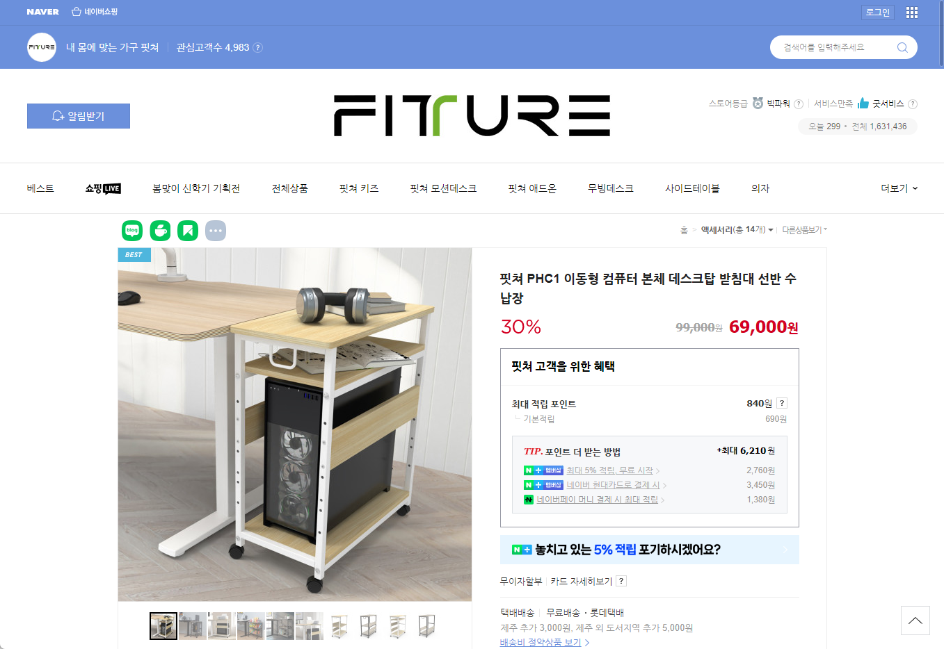 핏쳐 데스크탑 거치대 PHC1 이동형 컴퓨터 본체 데스크탑 받침대 선반 수납장 - DESKTOP HOLDER 카멜 camel 구매한 제품 정보