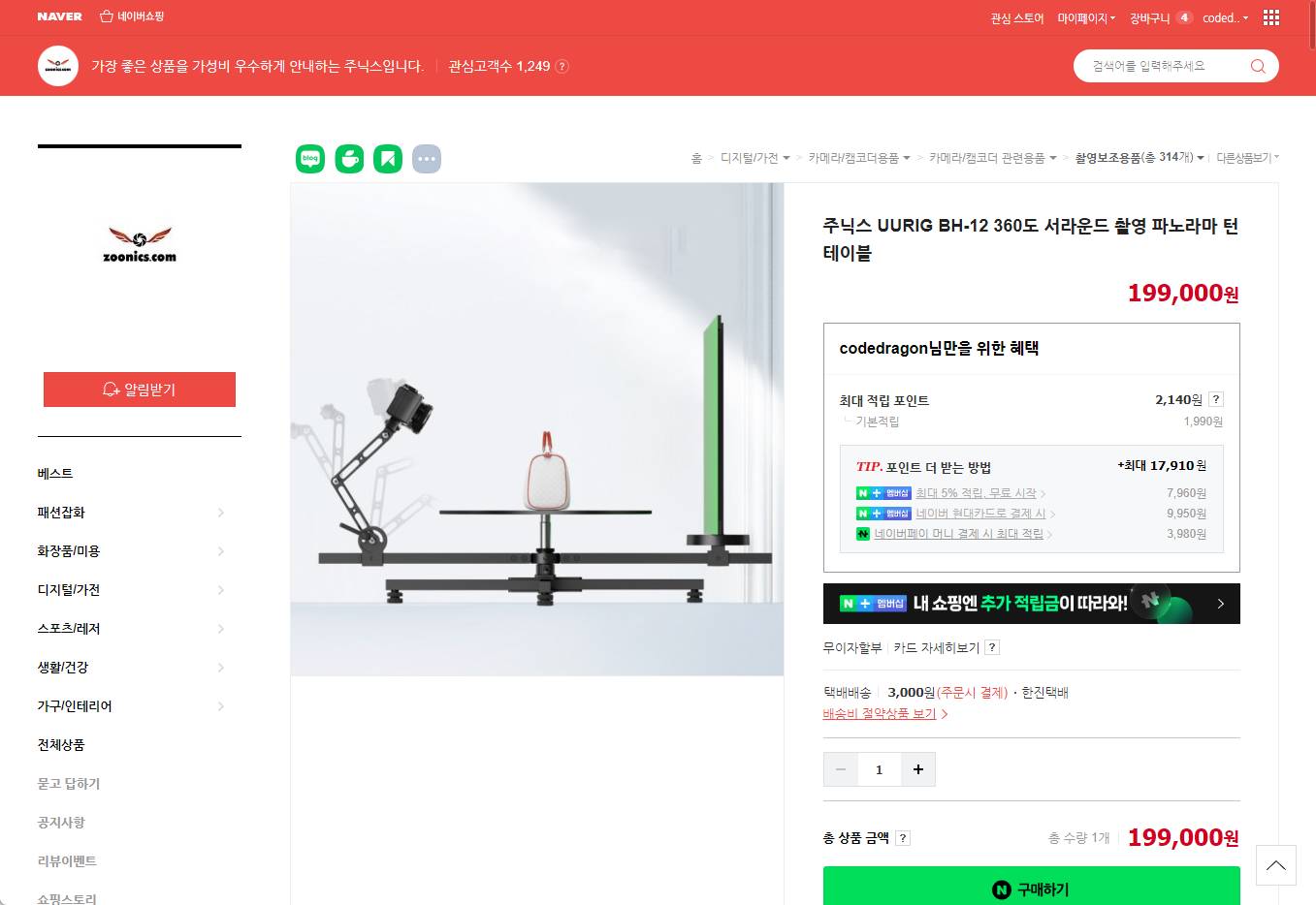 주닉스 UURIG BH-12 360도 서라운드 촬영 파노라마 턴테이블 - 제품상세정보
