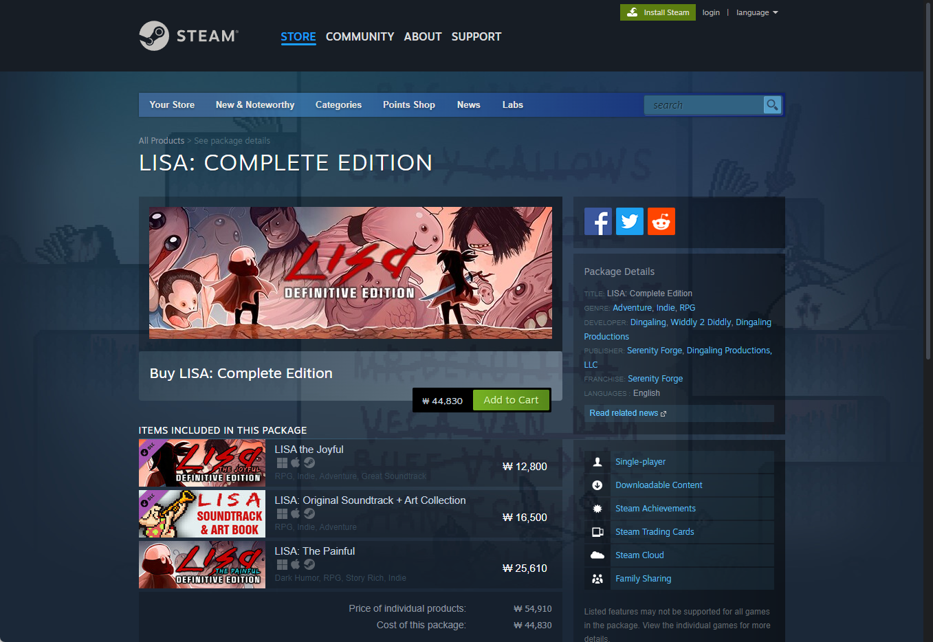 - "LISA: Definitive Edition" 구매내역 확인하기 - 계정