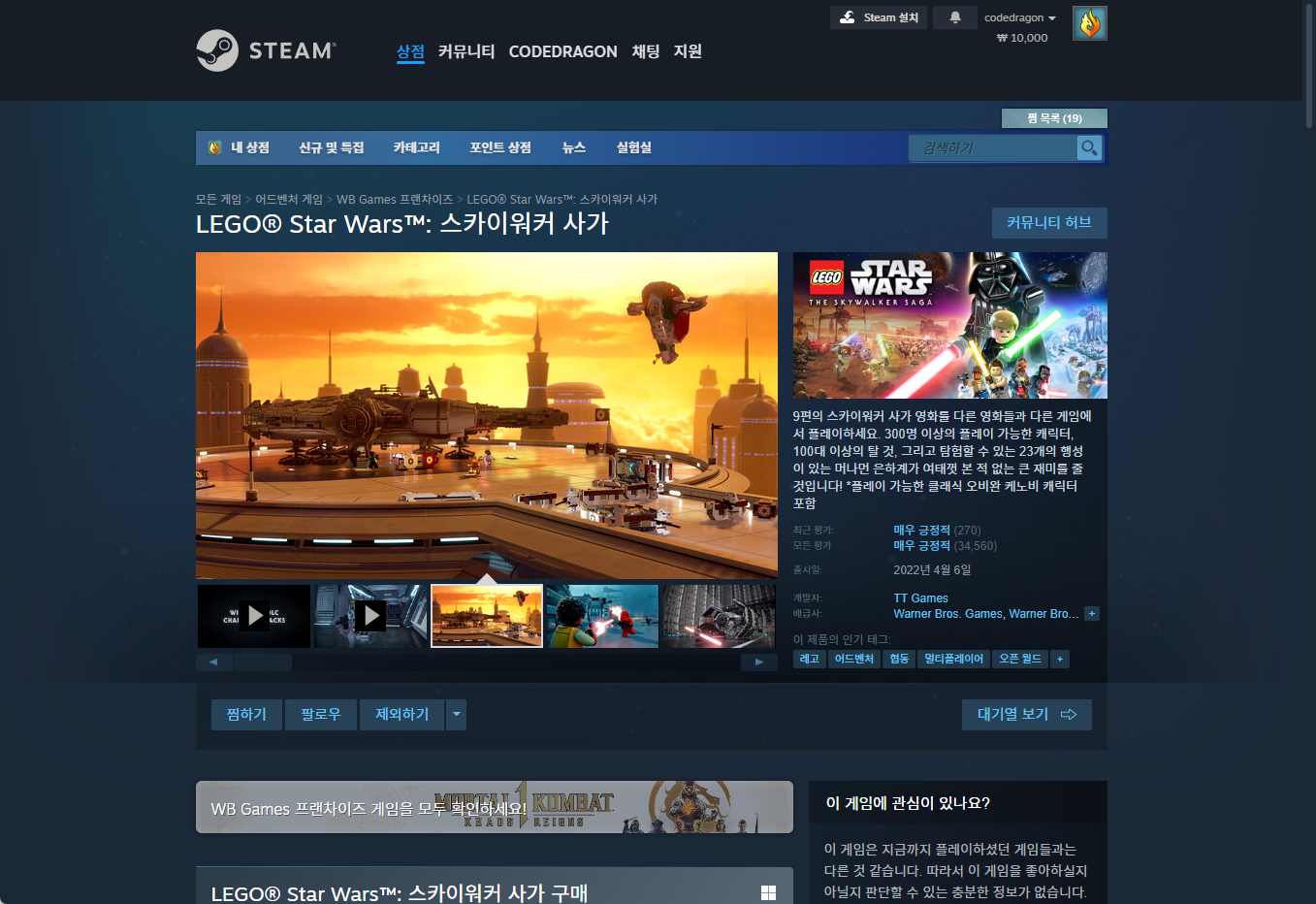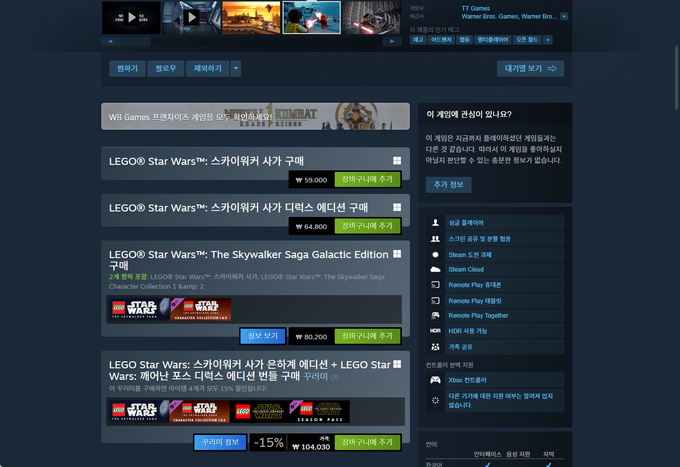 "LEGO Star Wars: The Skywalker Saga 레고 스타워즈: 스카이워커 사가" - Steam 스팀 게임 페이지
