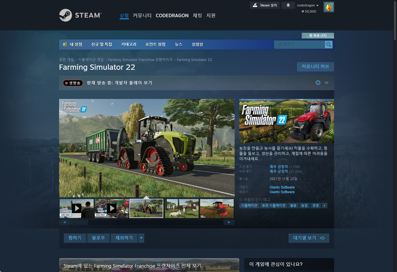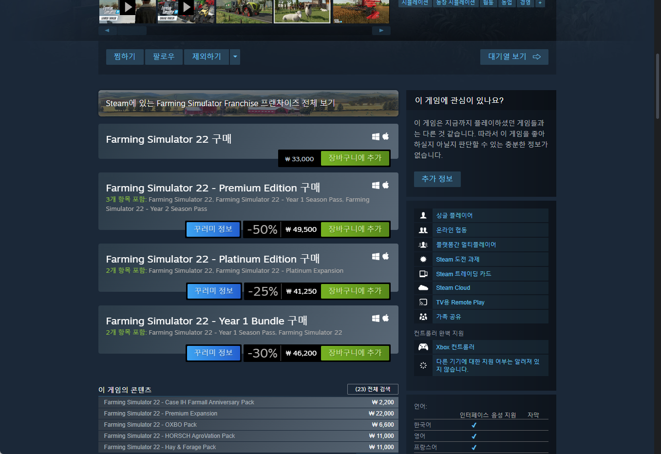 - "Farming Simulator 22" - Steam 스팀 게임 페이지
