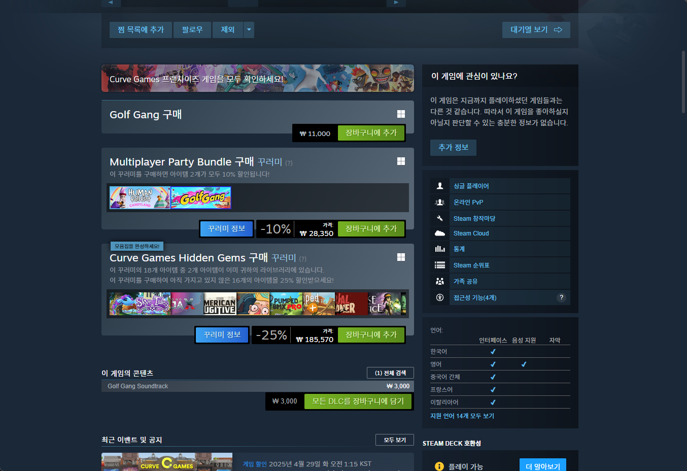 - "Golf Gang (골프 갱)" - Steam 스팀 게임 페이지