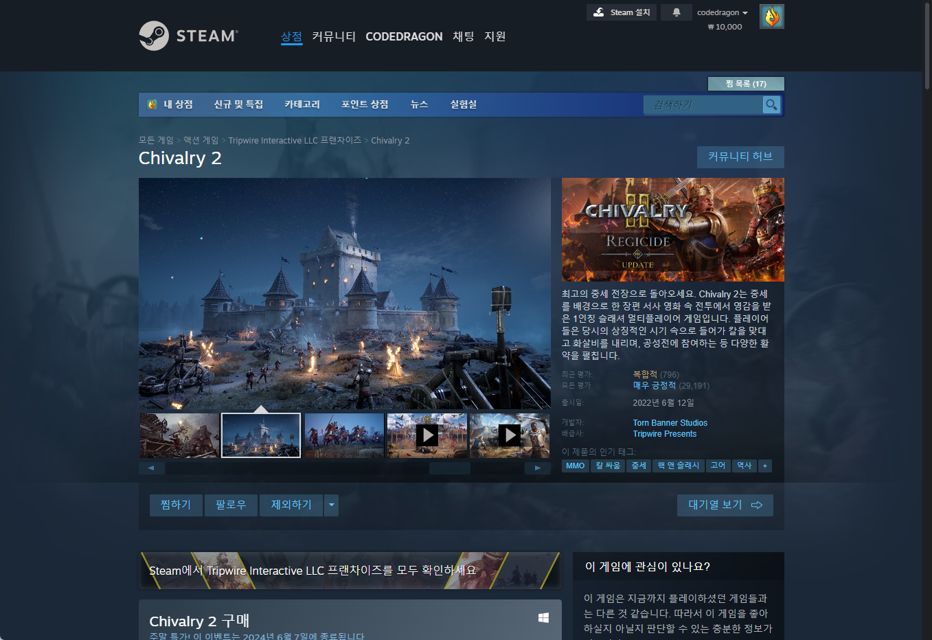 "Chivalry 2" - Steam 스팀 게임 페이지