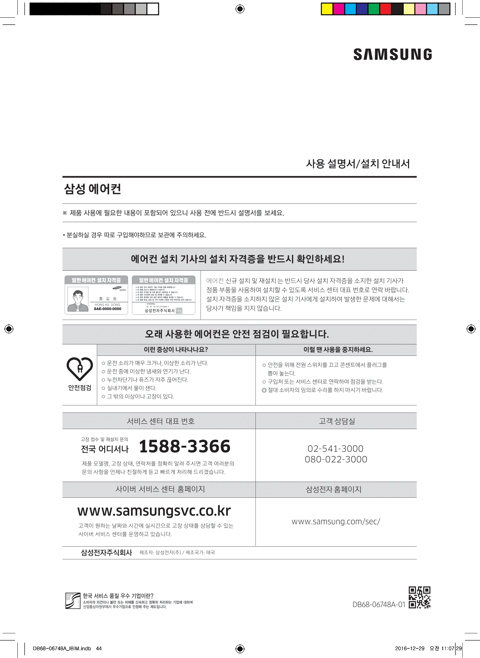 삼성에어컨 벽걸이 AR06M5170HNQ, 사용설명서, pdf
