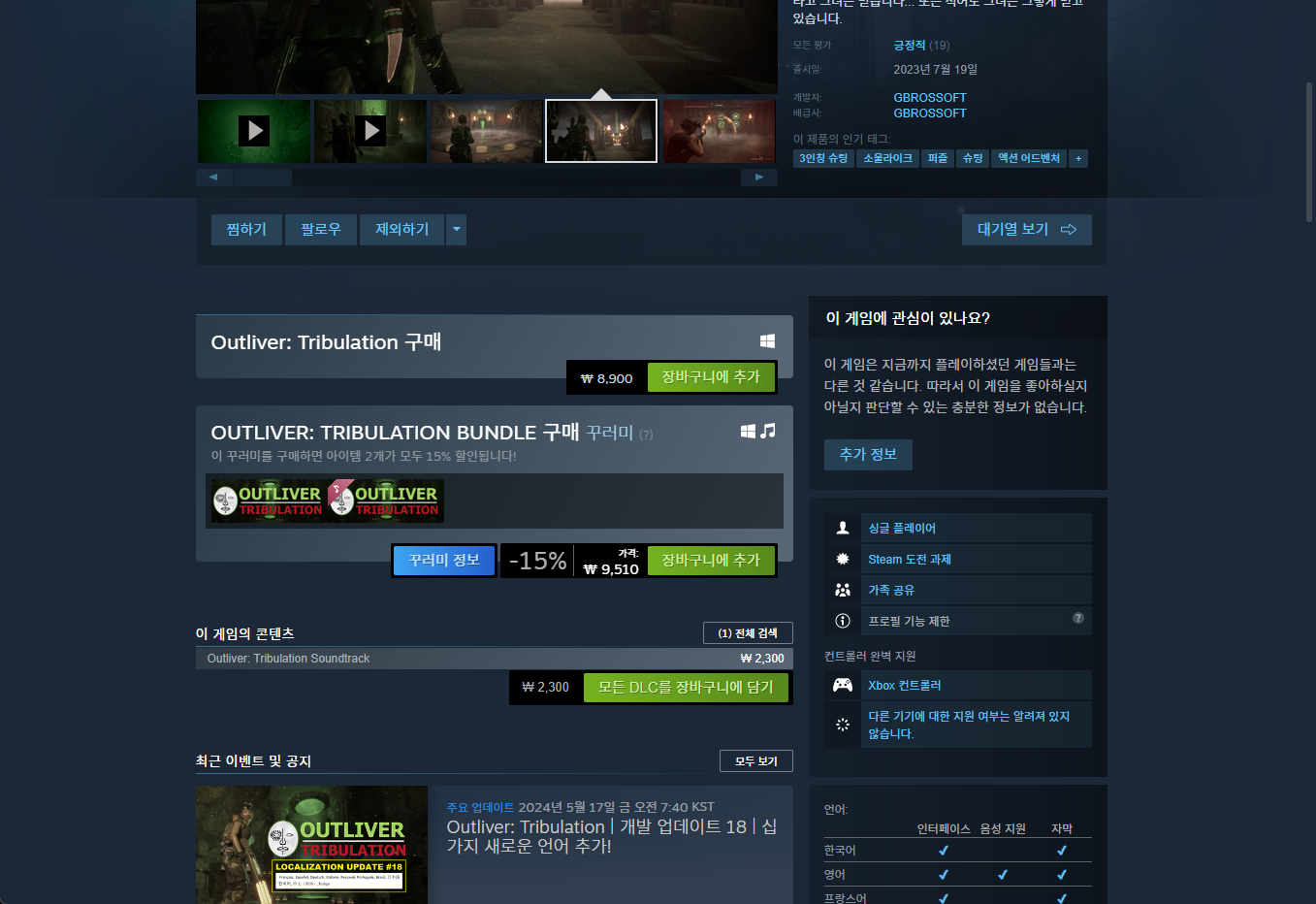 - "Outliver: Tribulation" - Steam 스팀 게임 페이지