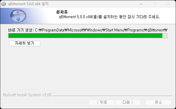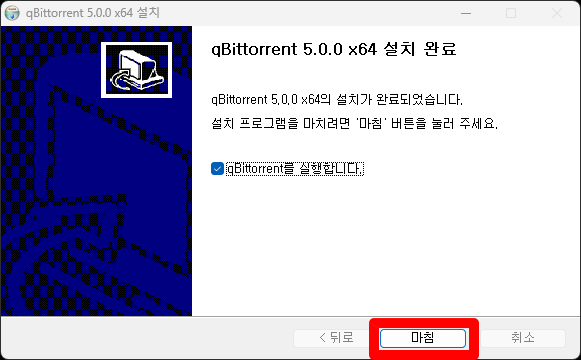 qBittorrent가 설치 후 실행완료되었습니다.