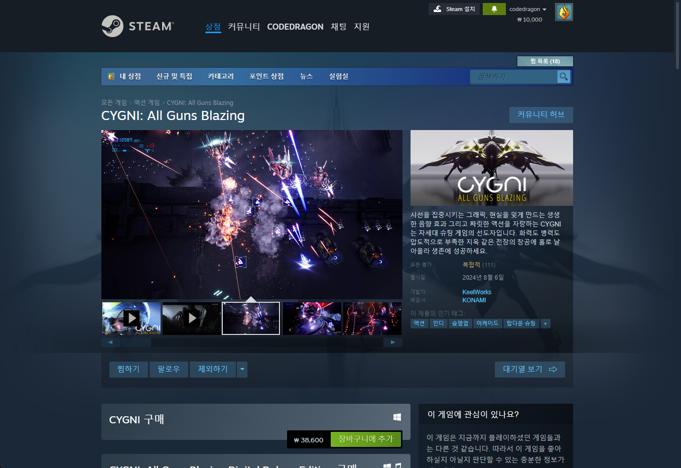 ₩38,600 → ₩0(FREE) CYGNI - All Guns Blazing 시그니 올 건즈 블레이징 무료로 받기 영구소장; 에픽 게임즈 epic games EGS 한시적 무료 Get free copy