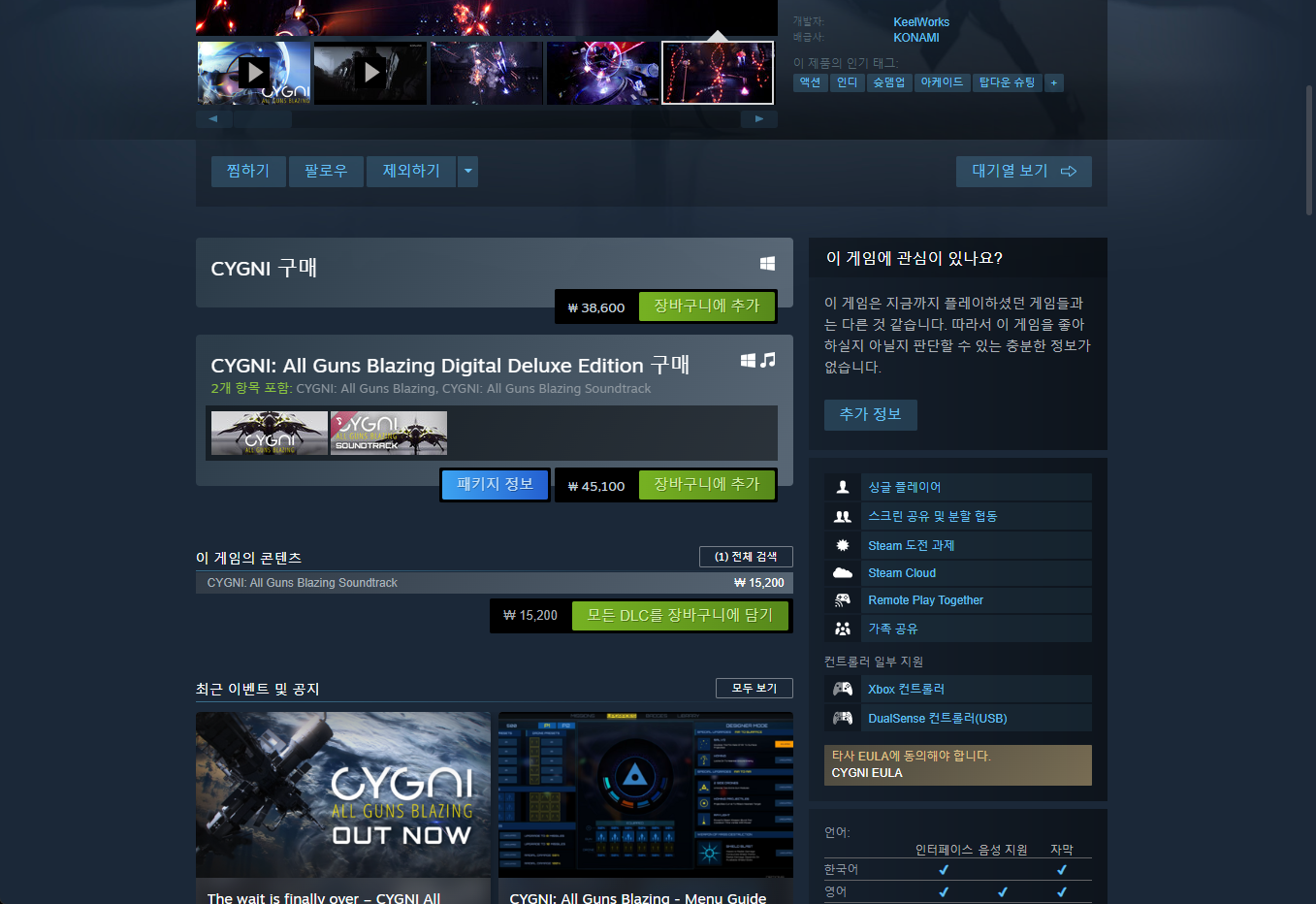 - "CYGNI - All Guns Blazing" 게임 보유 확인