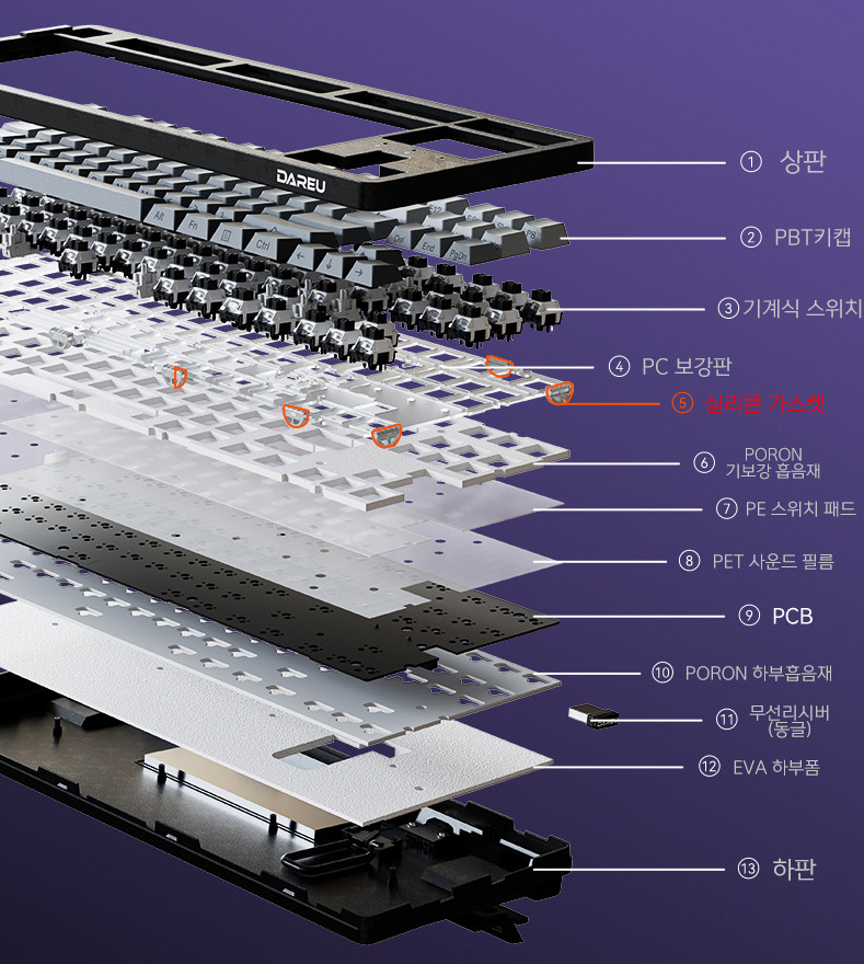 DAREU 다얼유 EK87PRO 무선 기계식 키보드 텐키리스 - 가스켓 Gasket 구조