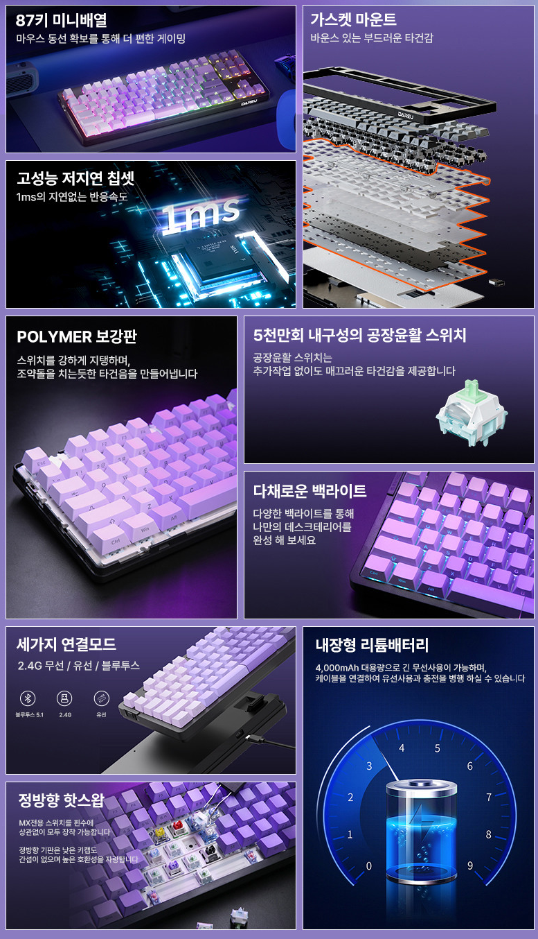 | 백라이트 모드 | LED 지원 (RGB, 패턴) |