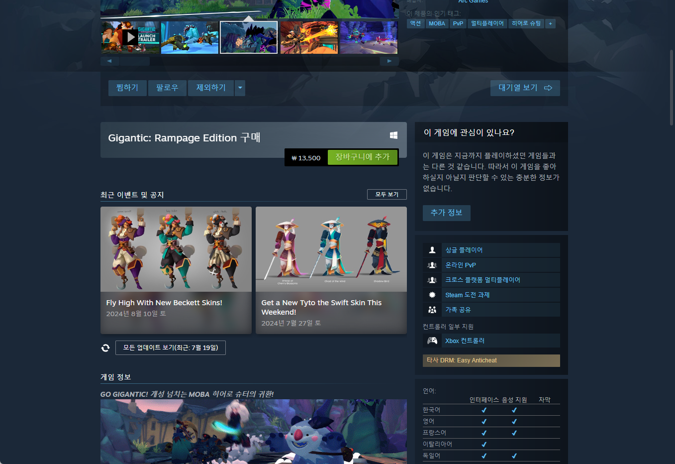 "Gigantic: Rampage Edition" - Steam 스팀 게임 페이지